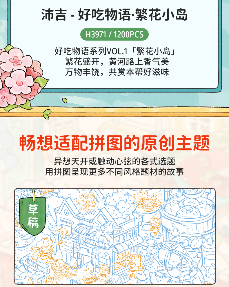 1200片 平面塑料拼图 H3971 沛吉-好吃物语·繁花小岛
