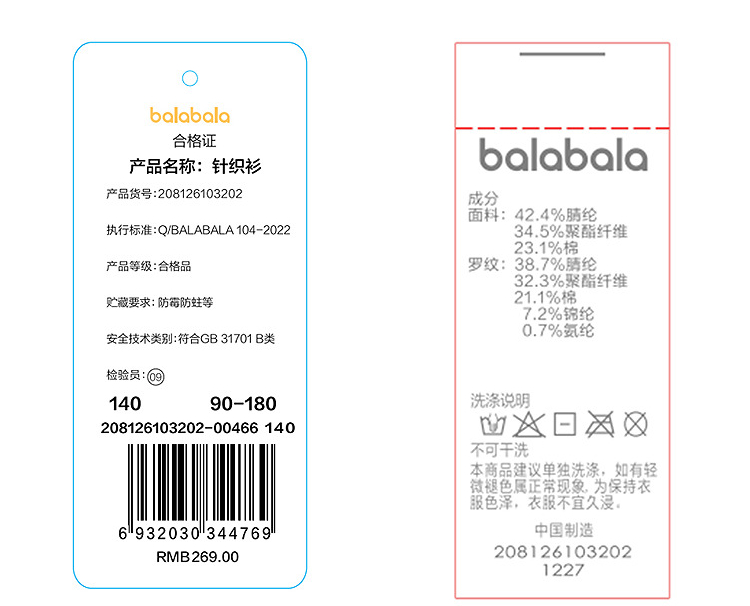 【balaOne】巴拉巴拉童装儿童毛衫亲子装2025新款春秋装提花内搭