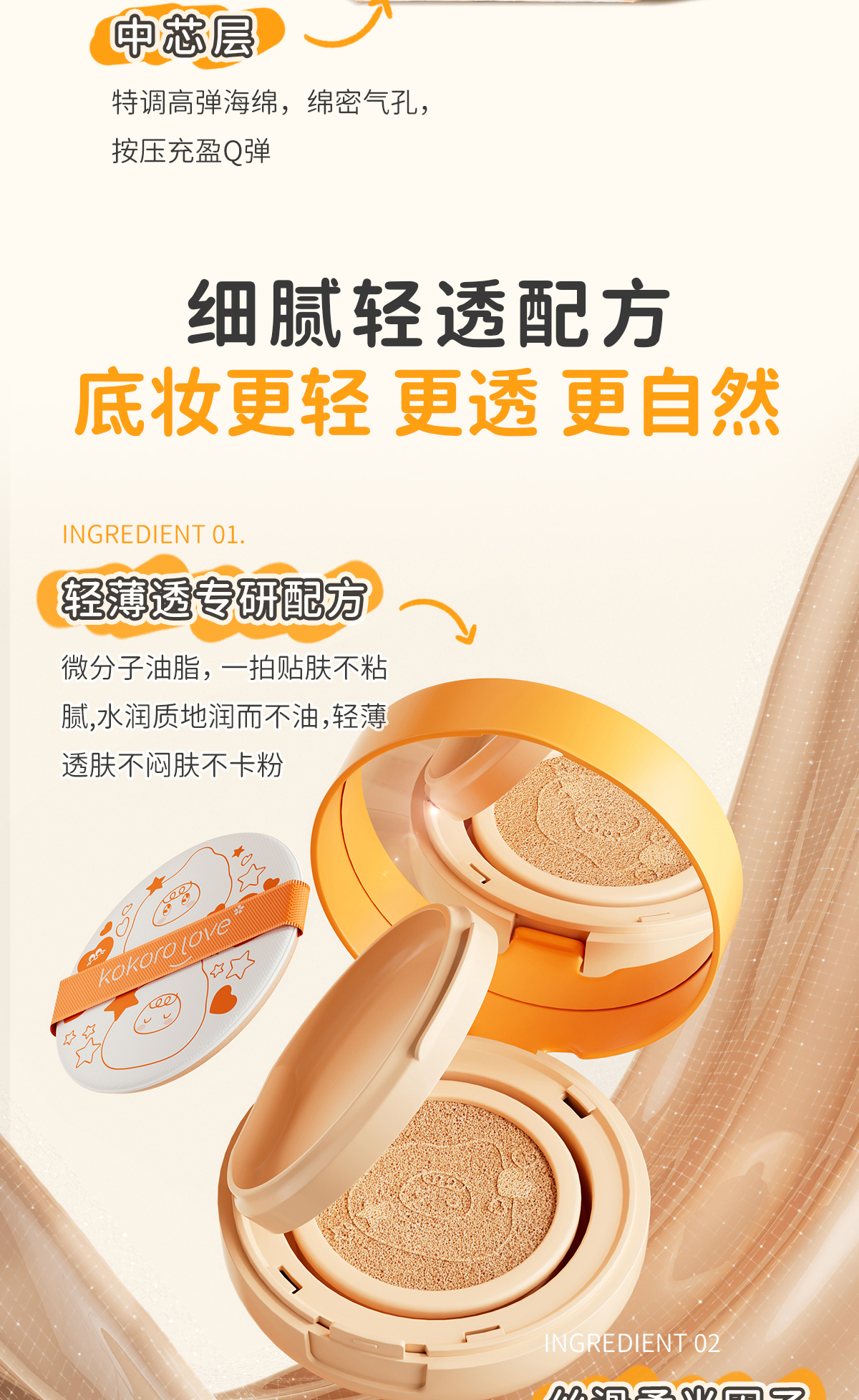 kokoro love 初葆 萌彩滤镜感海绵气垫粉底液 7g 儿童彩妆