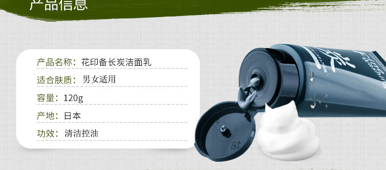 【2支装】花印 备长炭洁面乳控油去黑头男女士洗面奶 120g/支