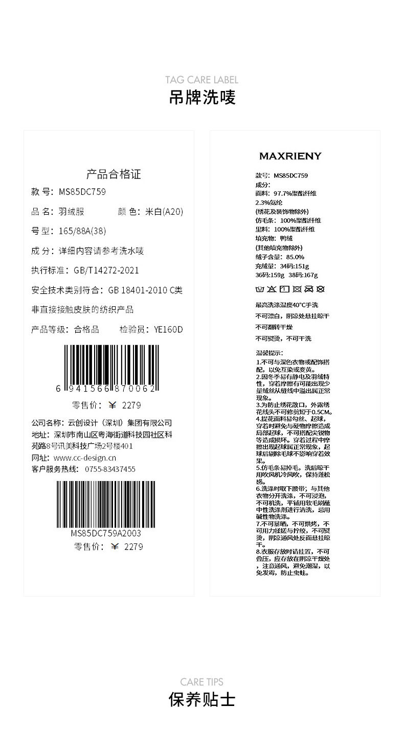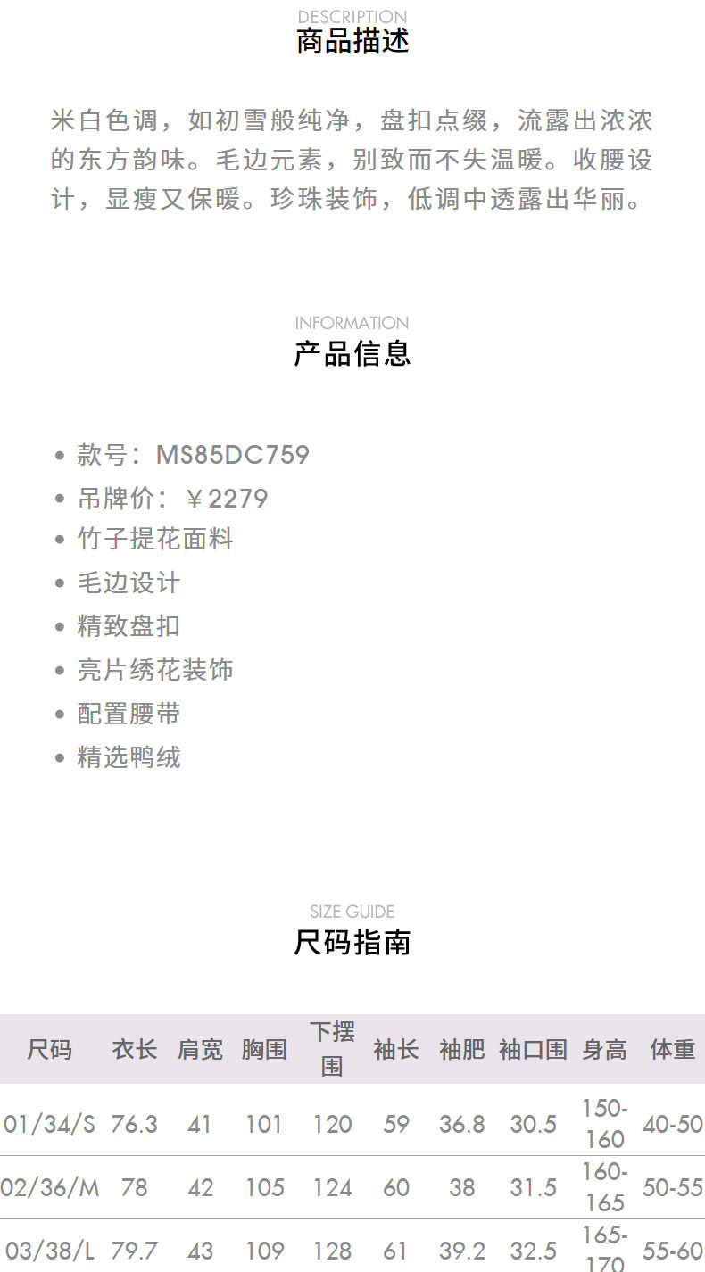 玛克门店发货:MAXRIENY贵雅服羽绒服(货号:MS85DC759)