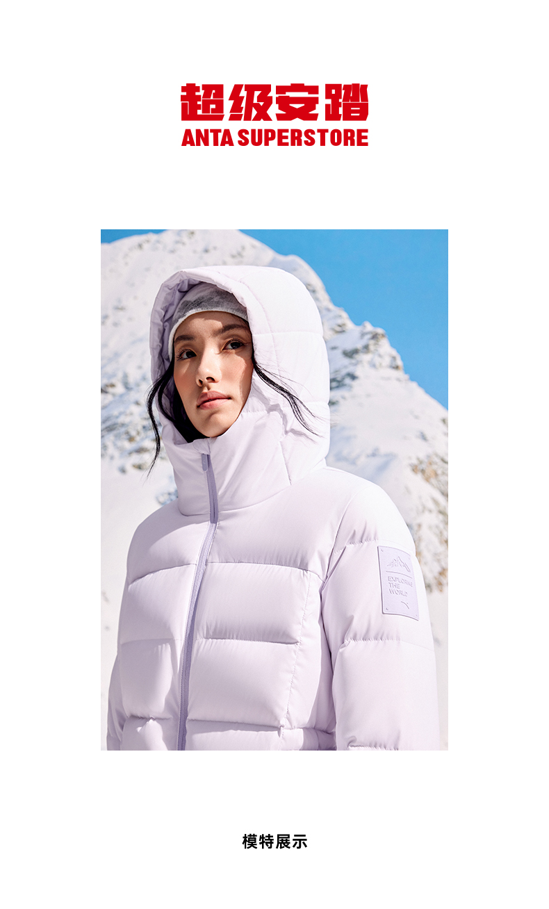 超级安踏连帽运动羽绒服女秋冬火山岩六度芯高效保暖防泼水外套162546906U