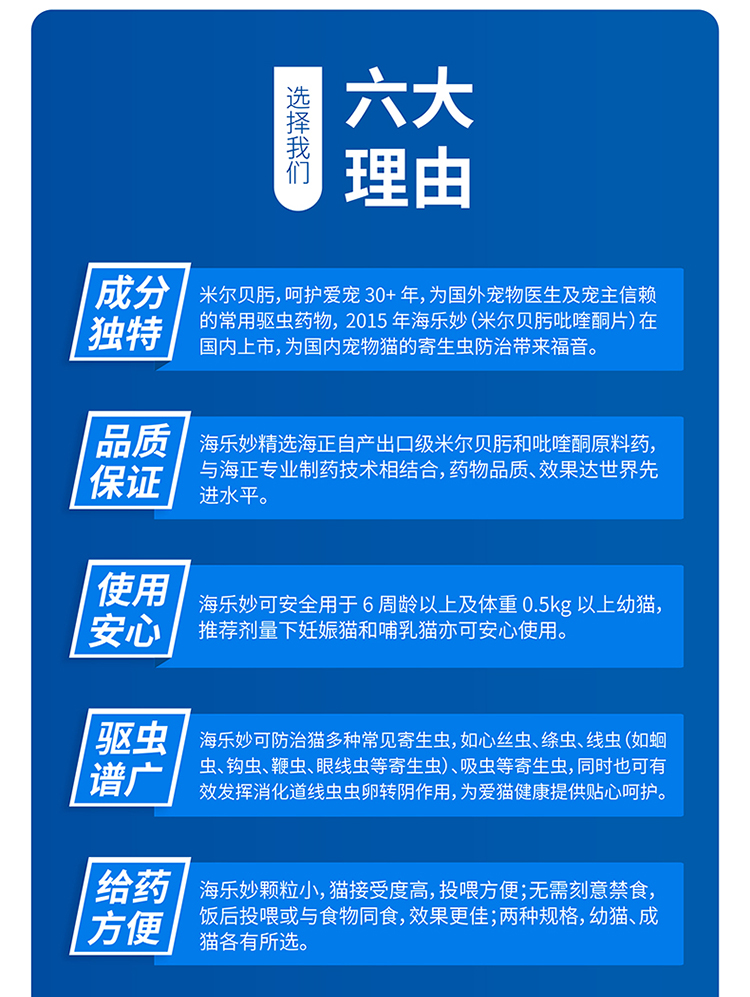 海乐妙 猫咪体内驱虫 幼猫成猫 身体内外 驱 体重0.5kg以上 原装有防伪