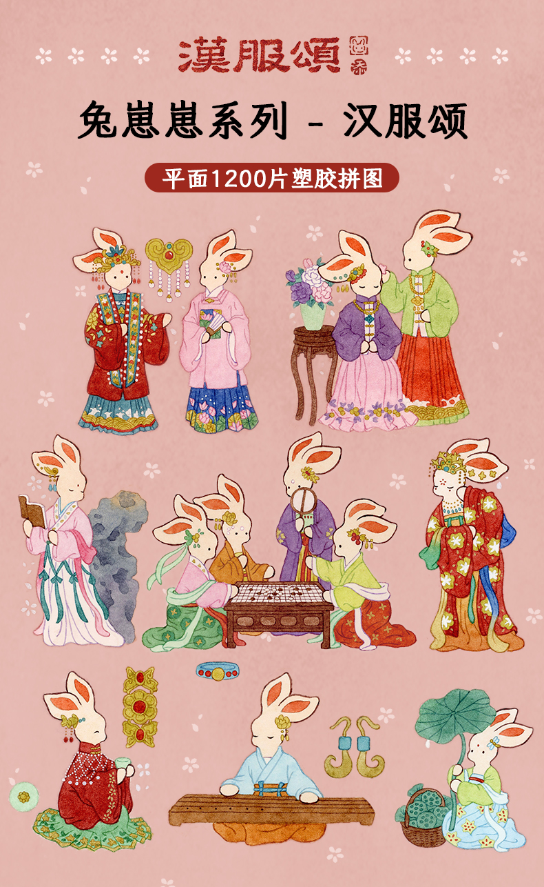 1200片 平面塑料拼图 H4068 添添Emily-兔崽崽系列-汉服颂