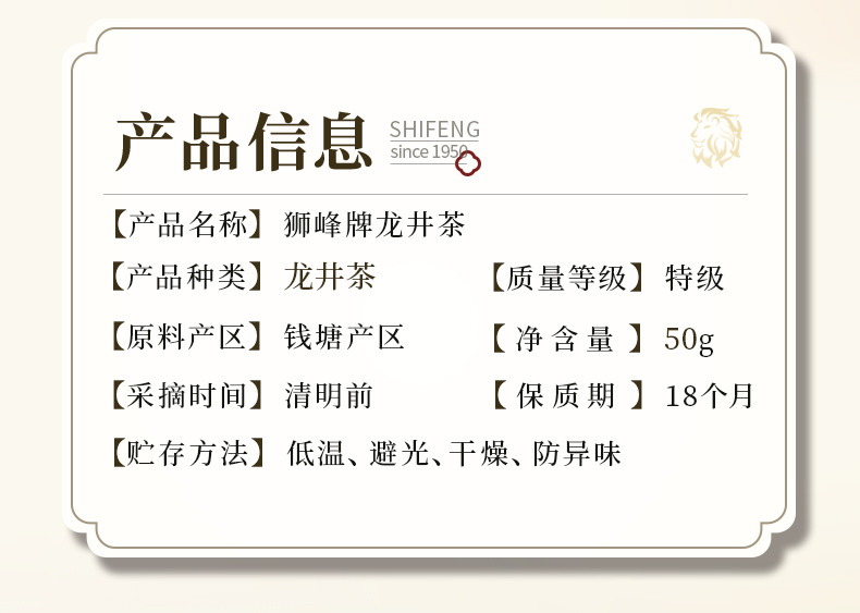 狮峰牌 龙井茶明前特级 50g(预售3月份发货)