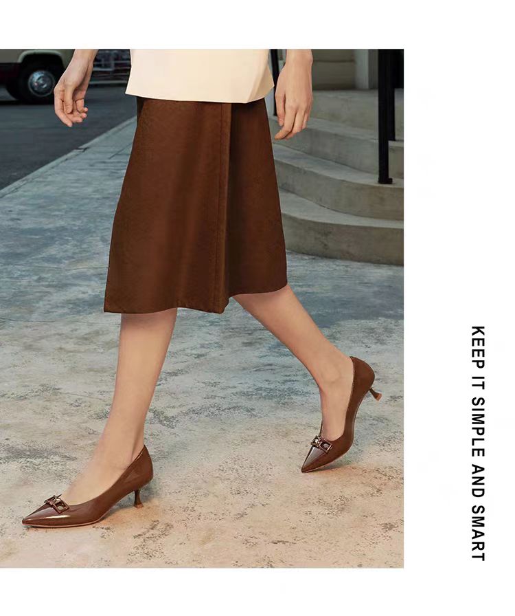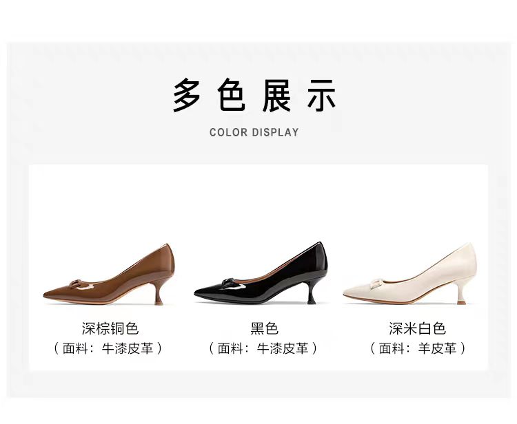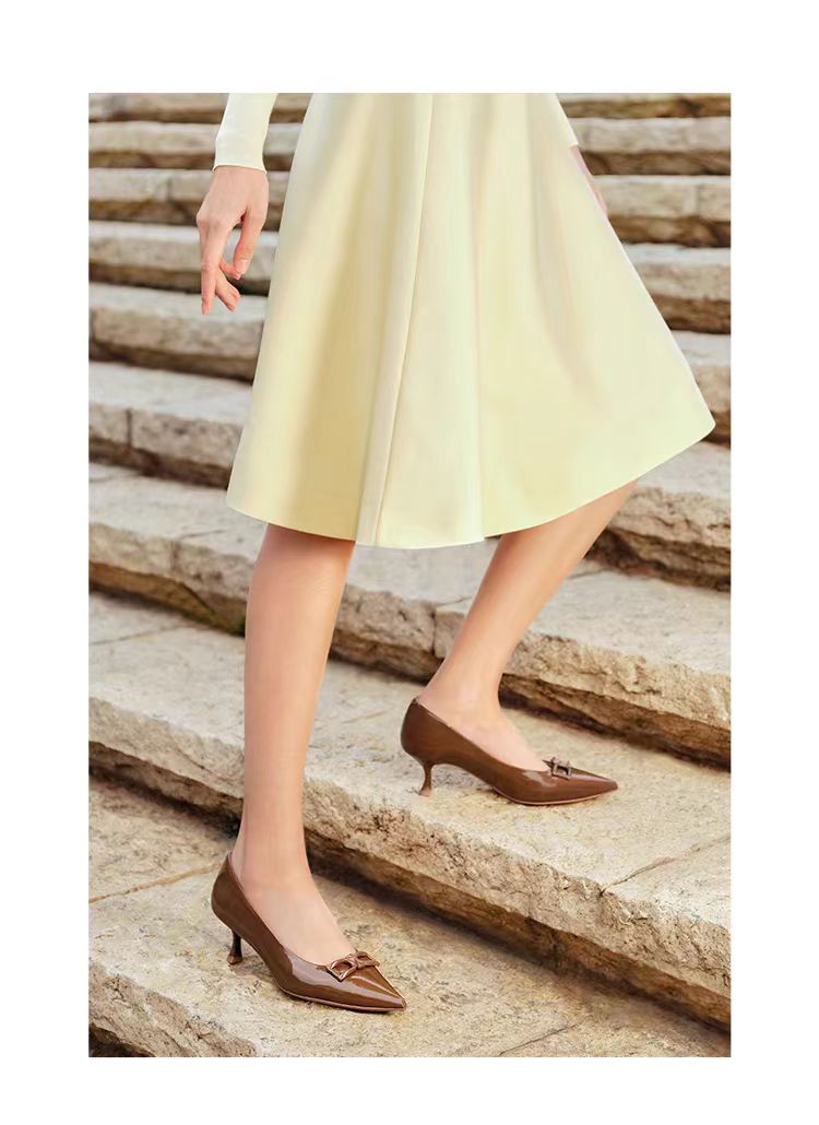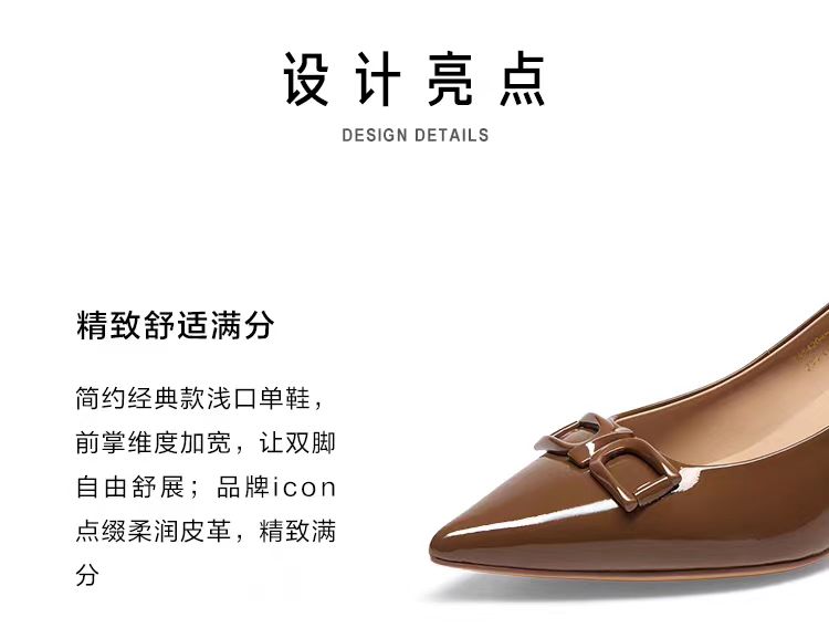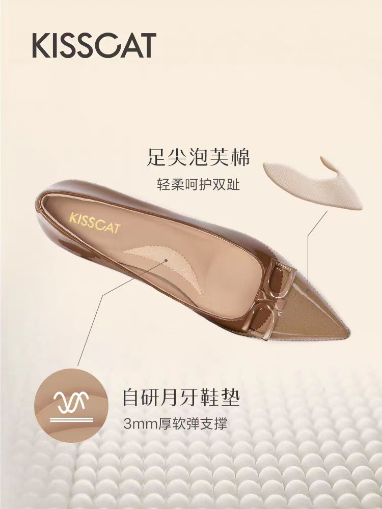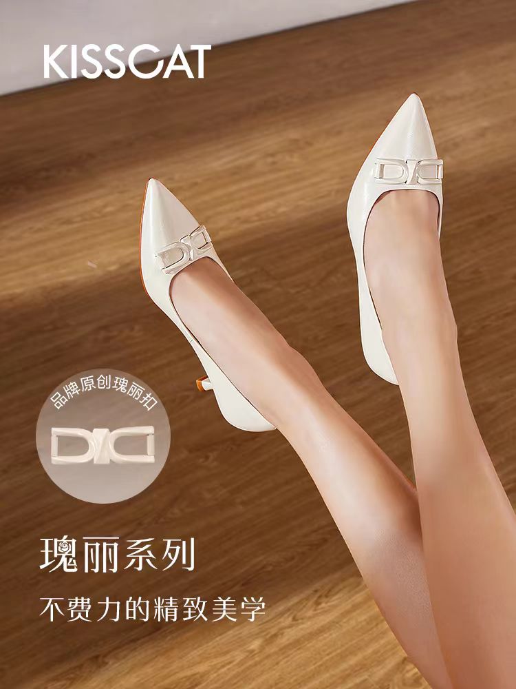 KISSCAT接吻猫[瑰丽系列]24春新烤漆饰扣尖头高跟法式细跟单鞋