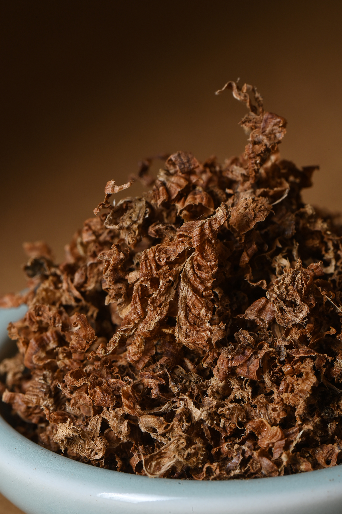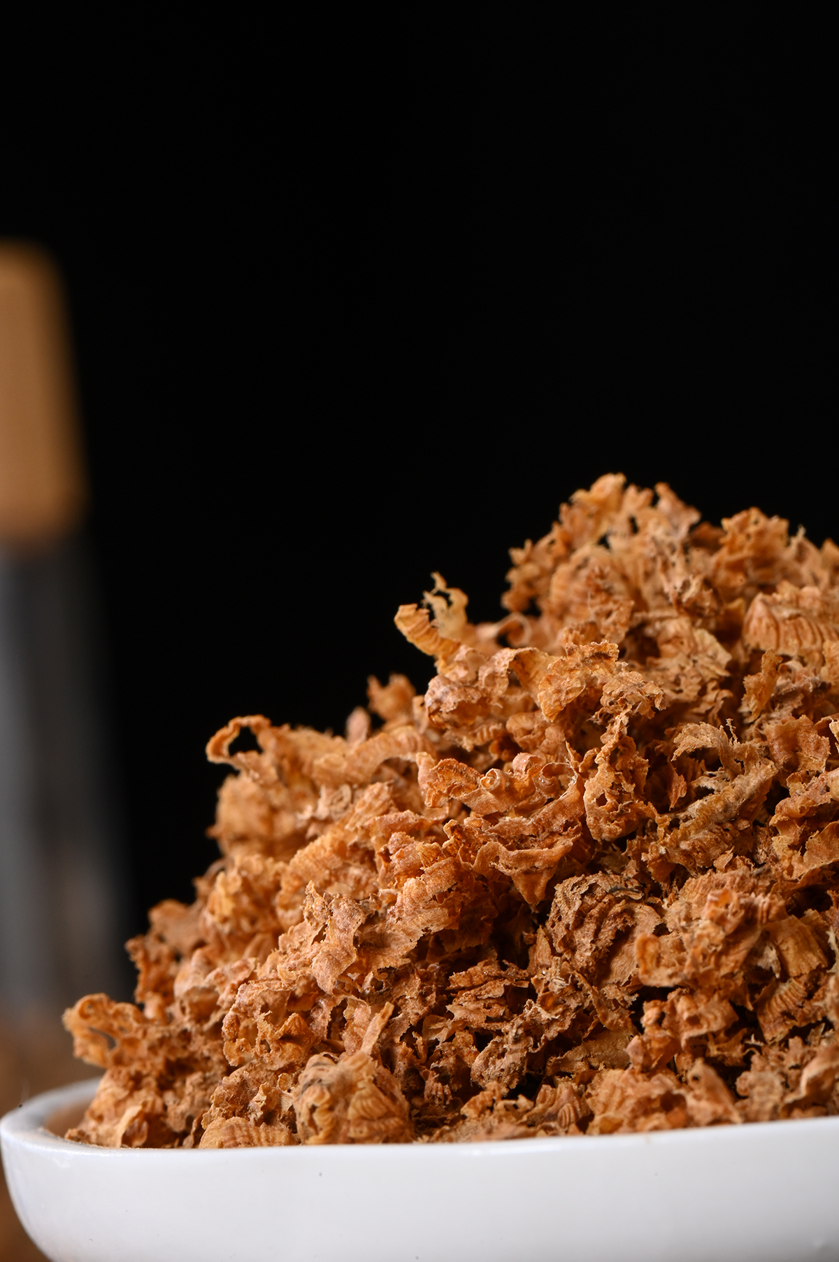 这并非普通的边角碎料,而是源自达拉干核心腹地的树心油勾丝。匠人凭借老道经验,用钩针一刀一刀精心勾制的,唯有在结油最丰沛的部位,才能取下这些缕缕金黄的香材。