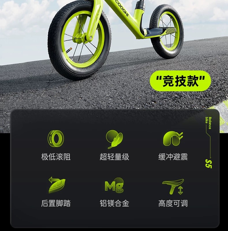 COOGHI酷骑竞技款儿童平衡车S5