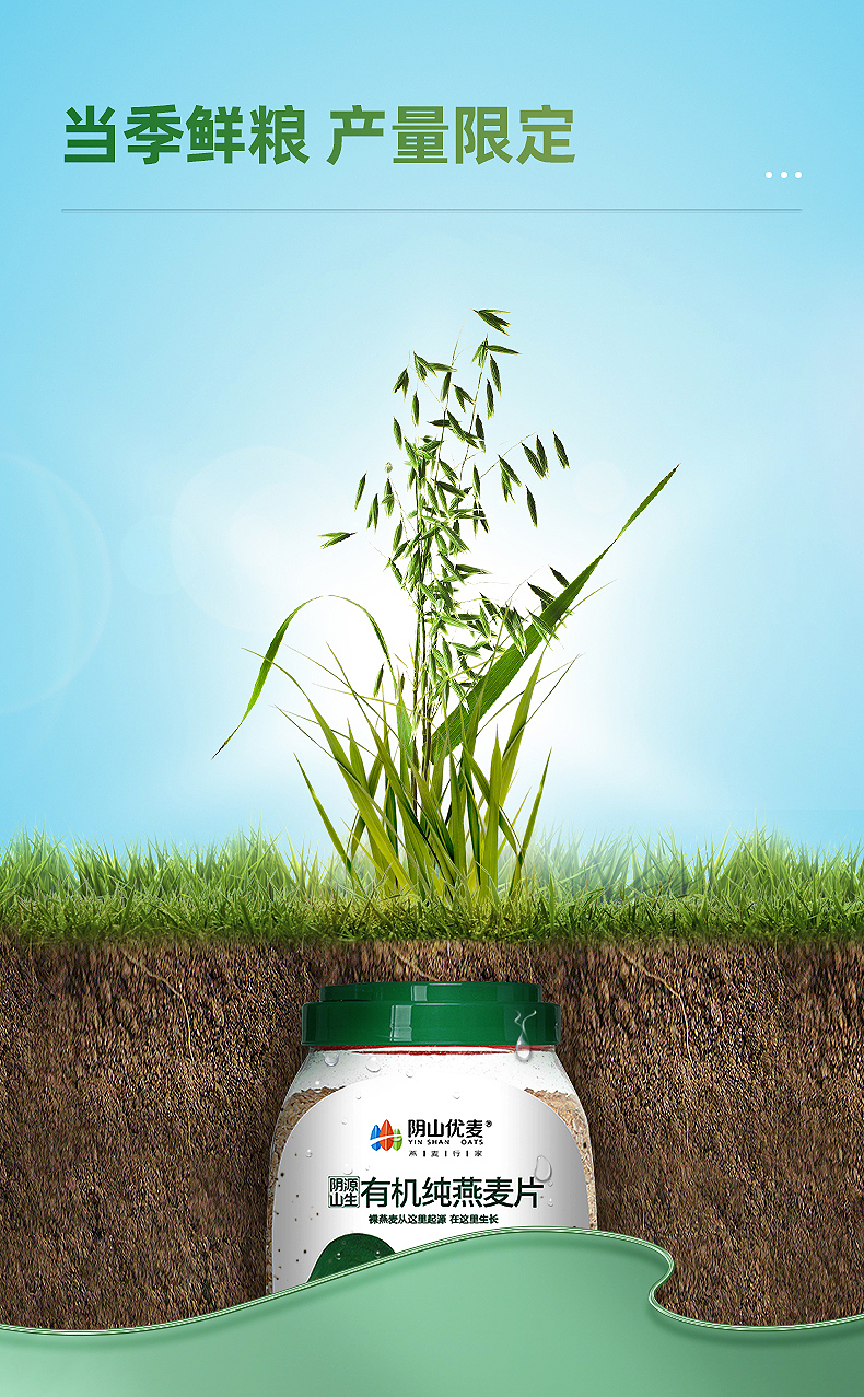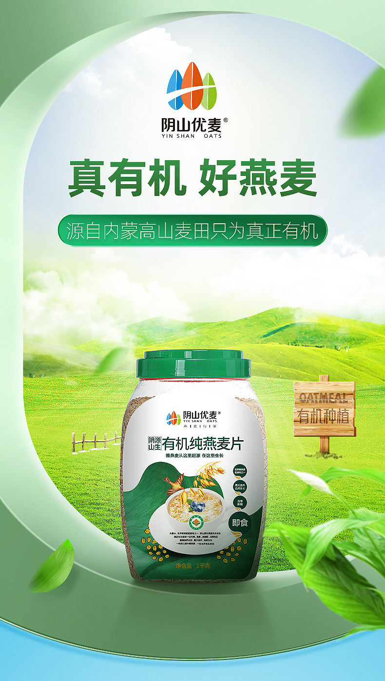 【阴山优麦·有机纯燕麦片】有机燕麦片1kg/罐 零添加 即食冲饮