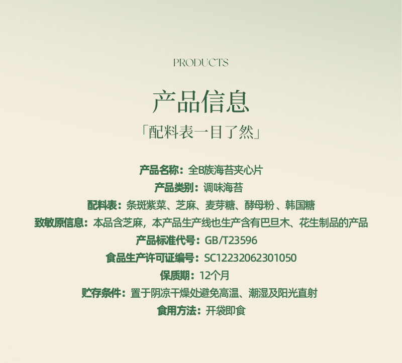 这款全B族海苔夹心片