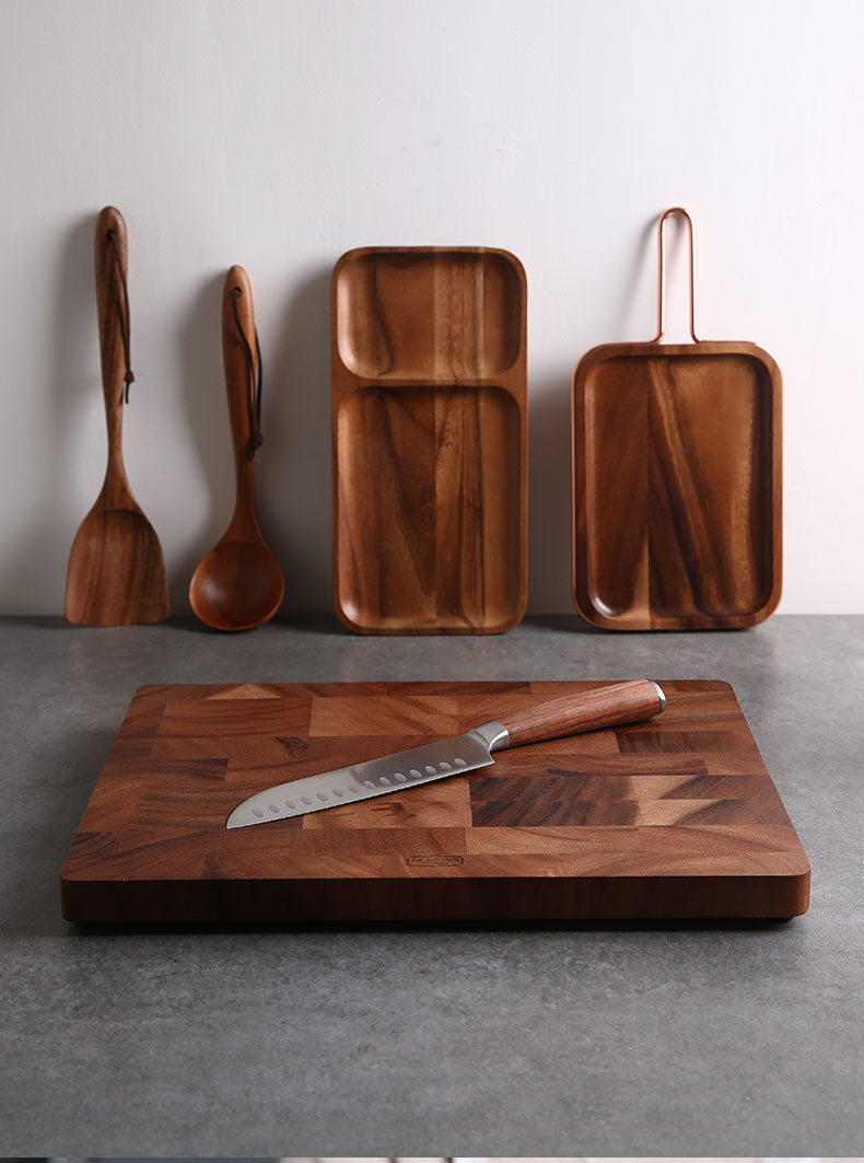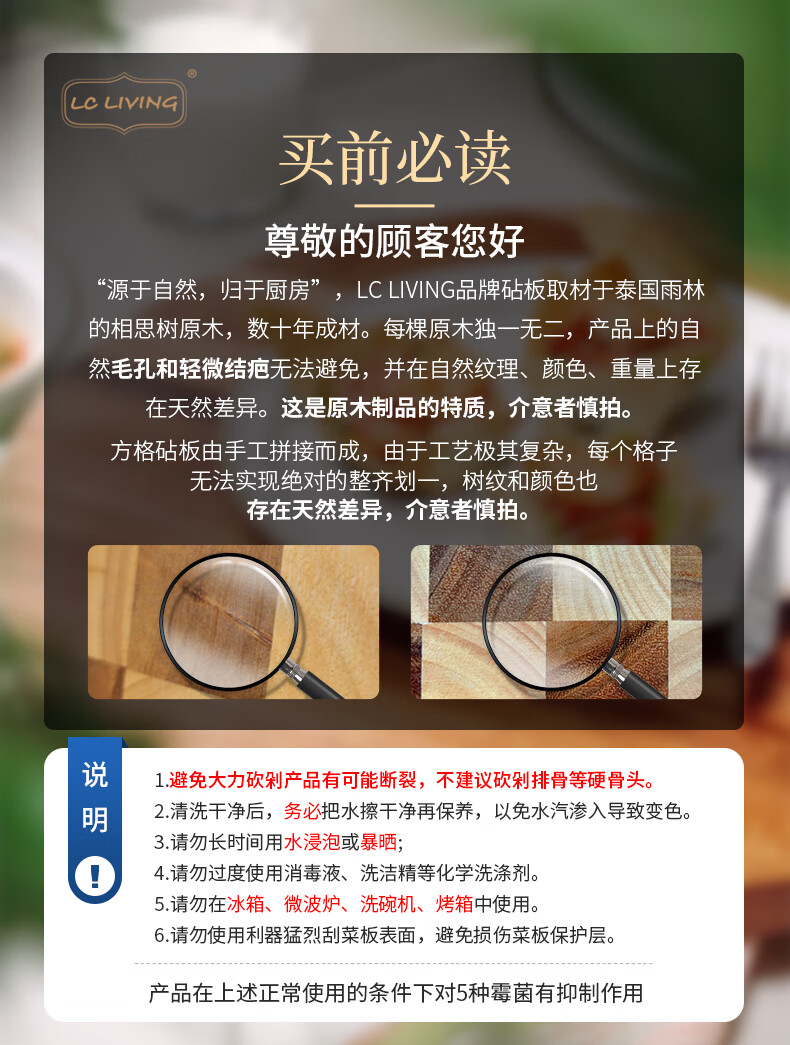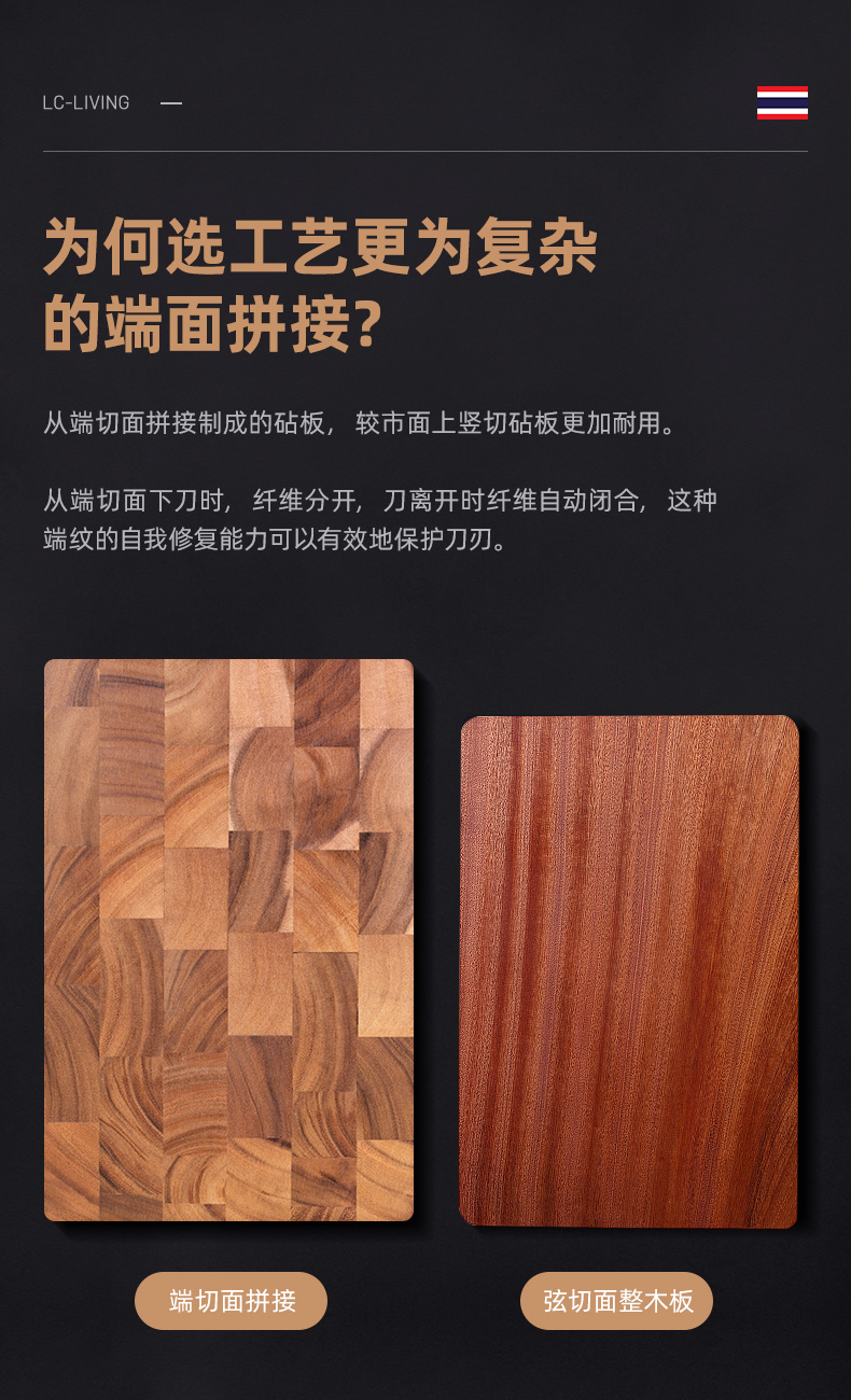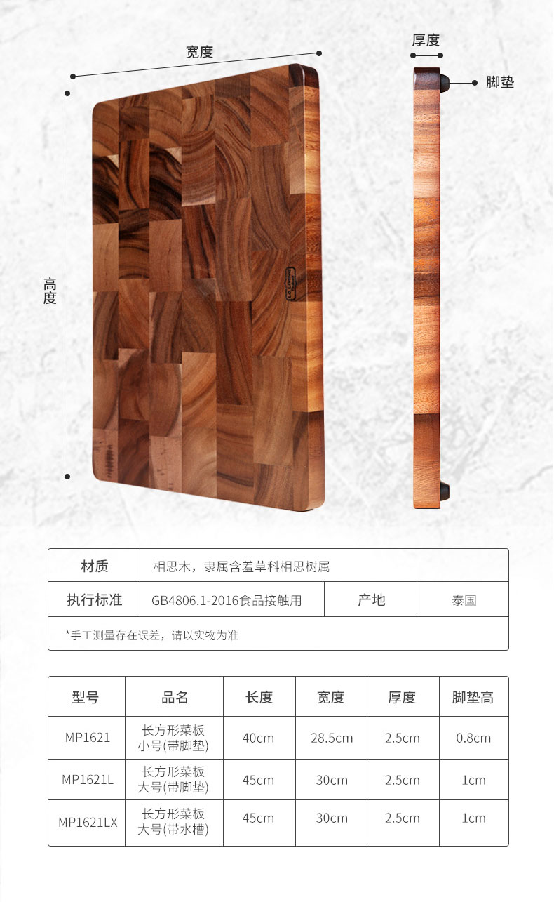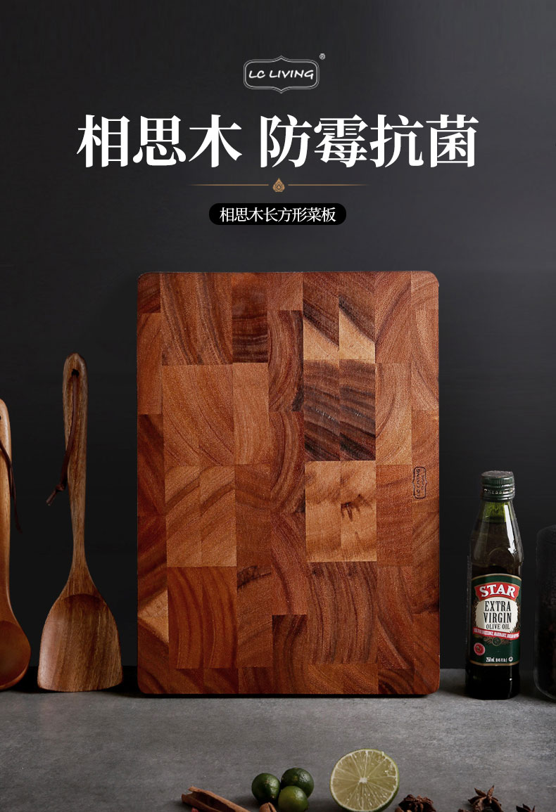 泰国LC LIVING相思木恩格瑞系列长方形带脚垫菜板砧板原木色大号