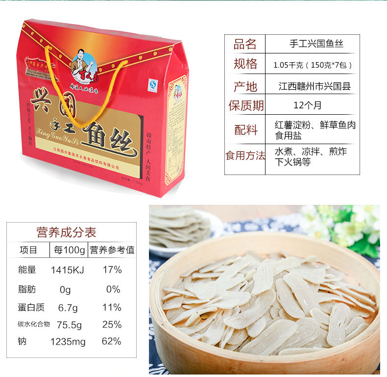百丈泉江西赣南特产兴国鱼丝礼盒鱼面鱼粉鱼肉粉丝面条送礼1050g