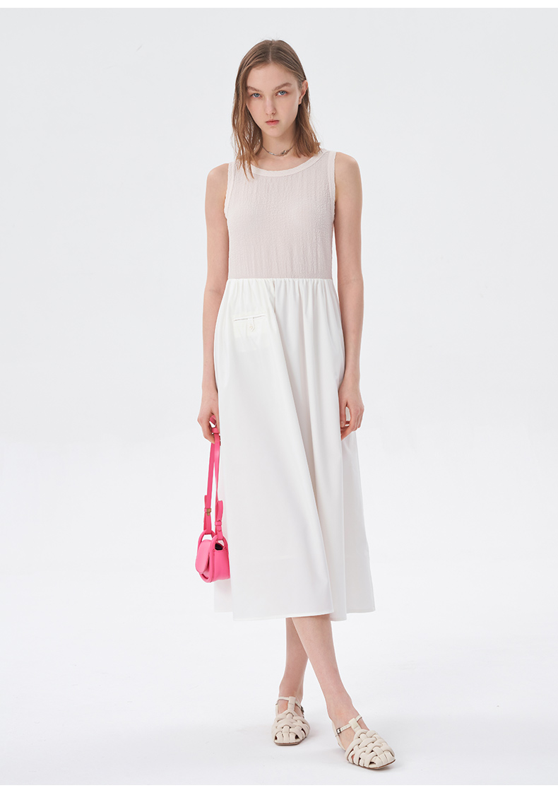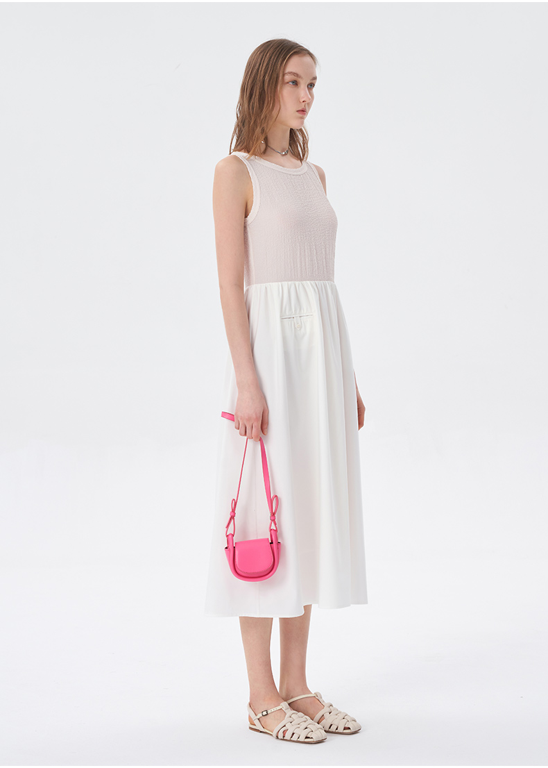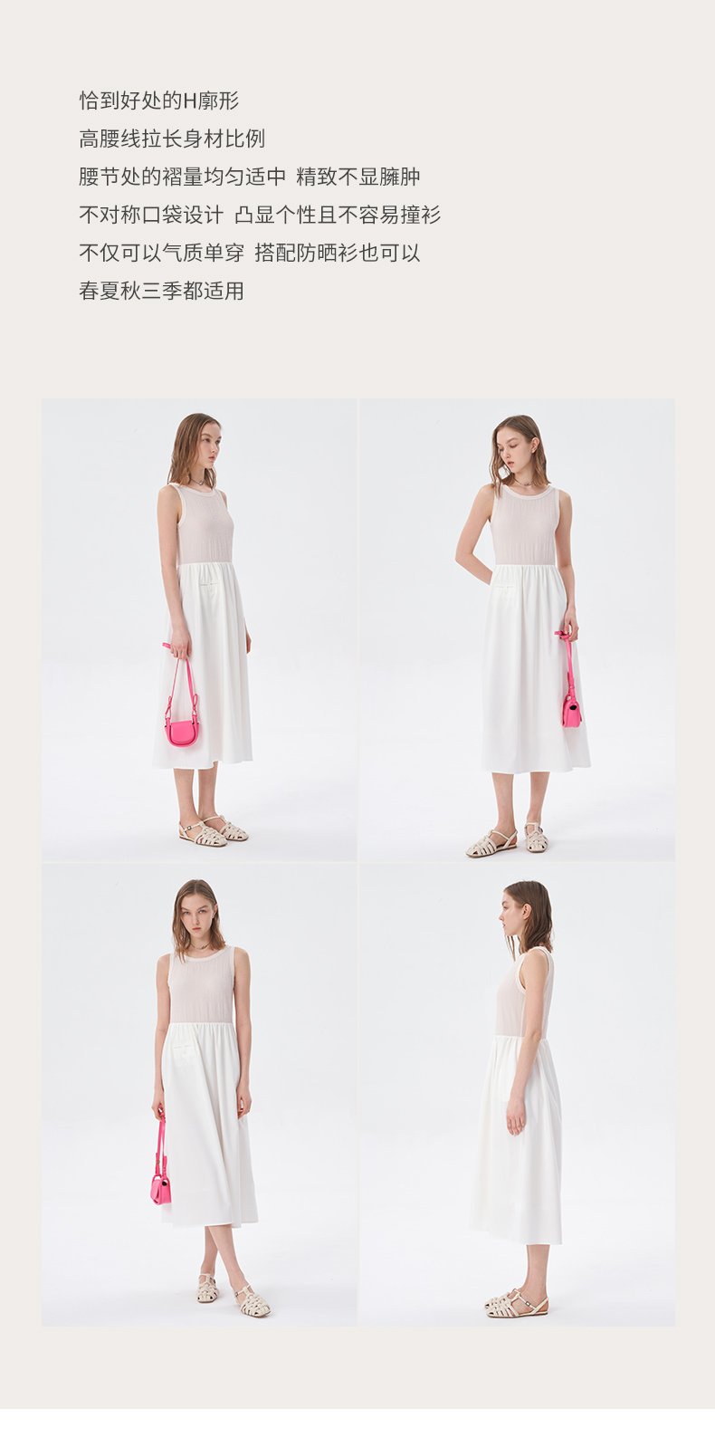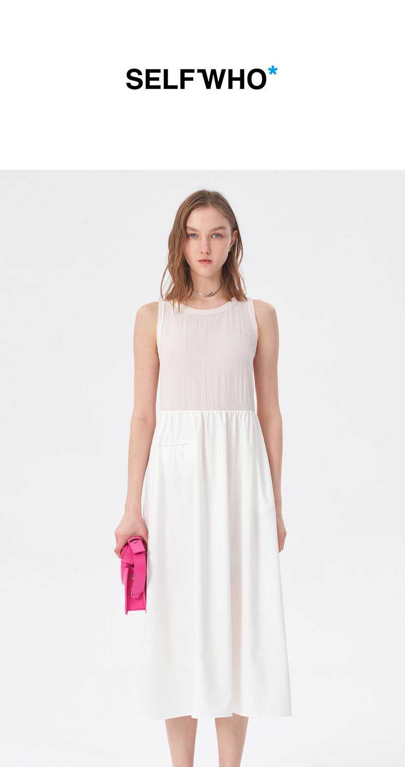 Self Who异材质拼接背带连衣裙2023新款夏季高腰显瘦微弹气质裙子