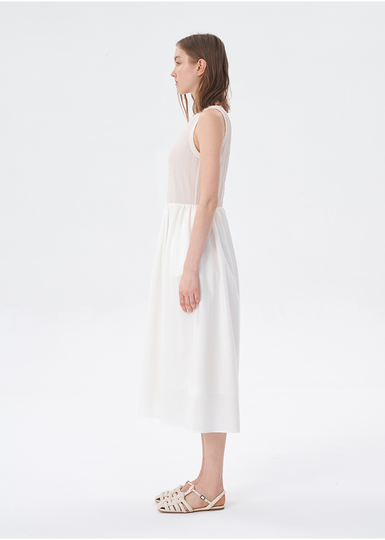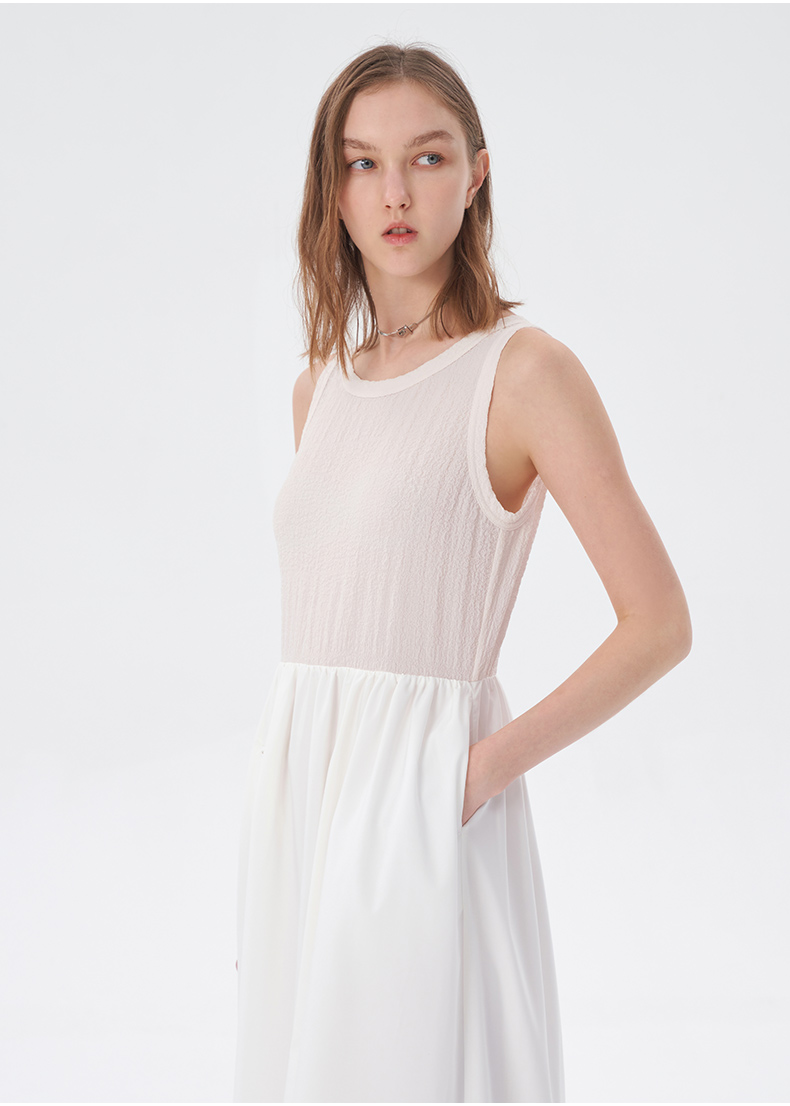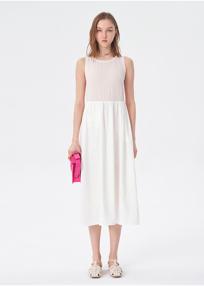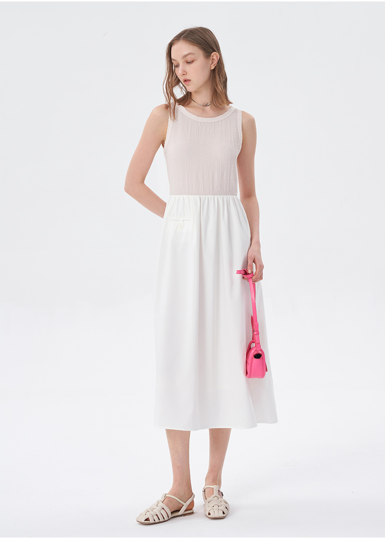 Self Who异材质拼接背带连衣裙2023新款夏季高腰显瘦微弹气质裙子