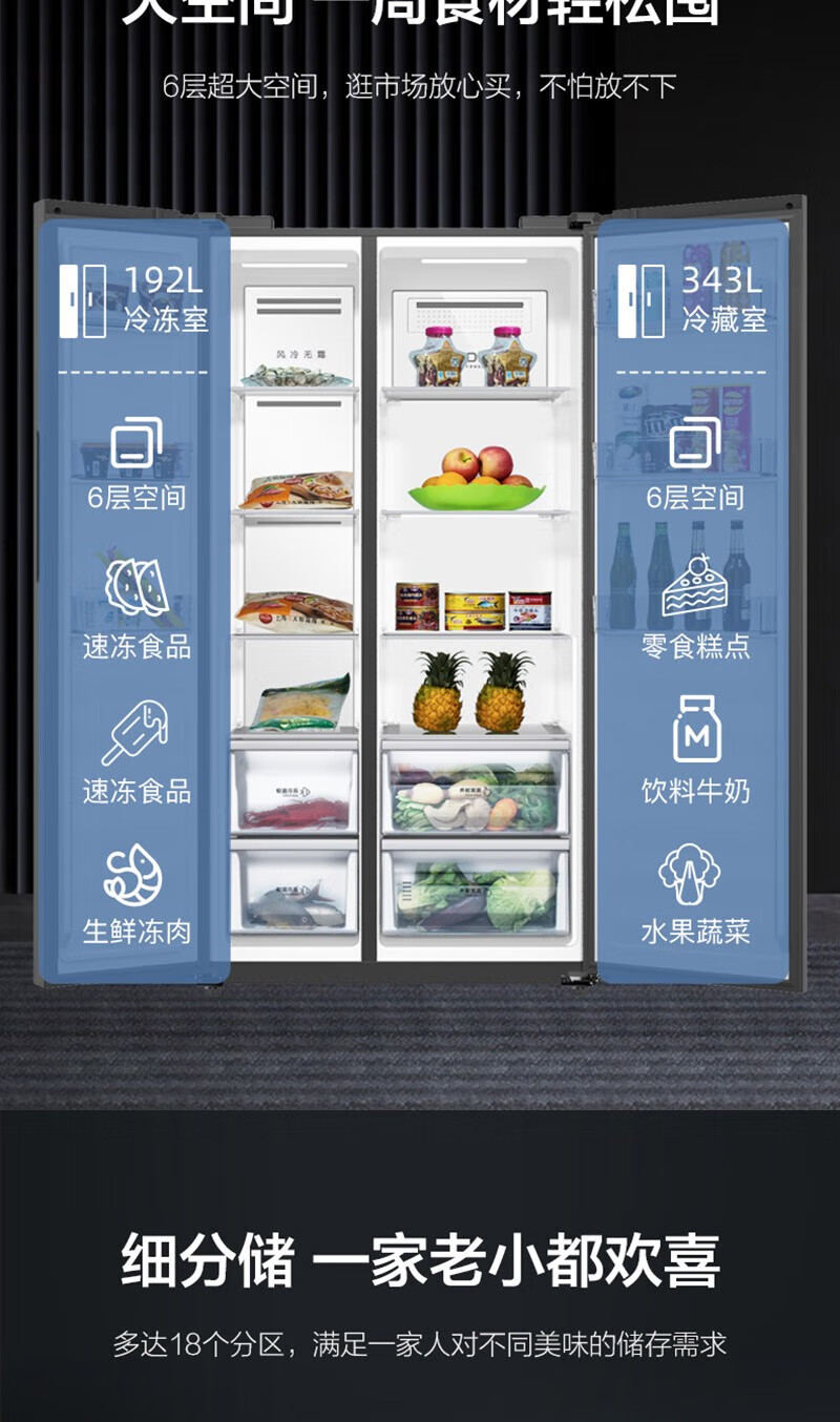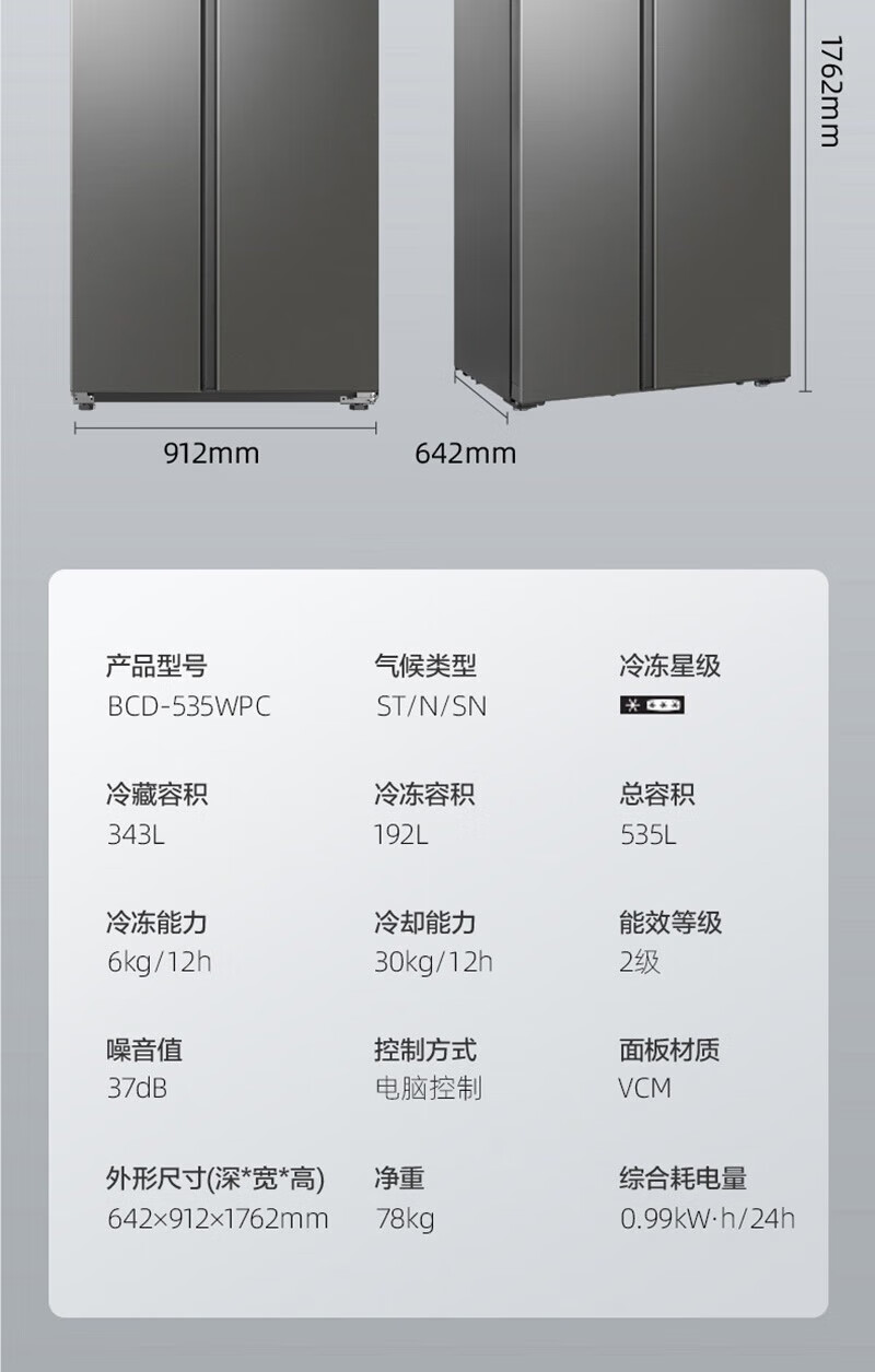MeiLing/美菱 BCD-338WP9B大容量两门冰箱风冷无霜变频一级节能
