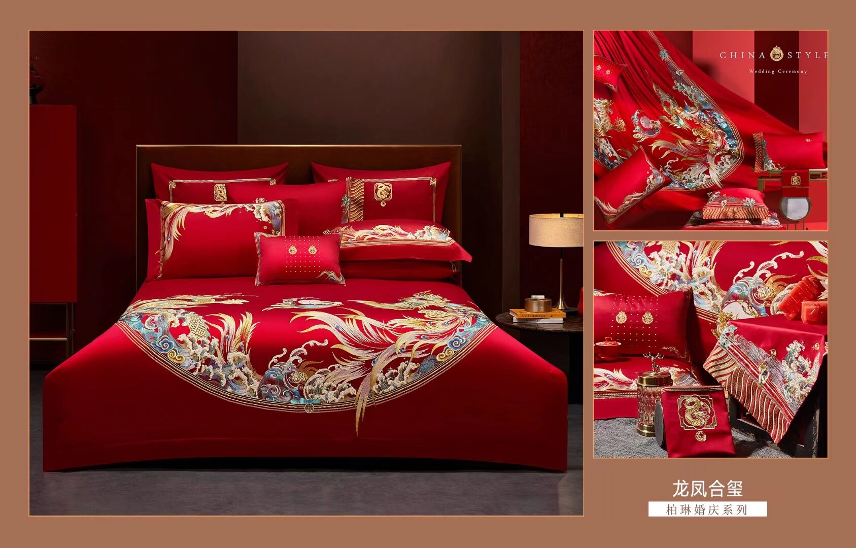 柏琳家纺婚庆红系列龙凤合玺六件套