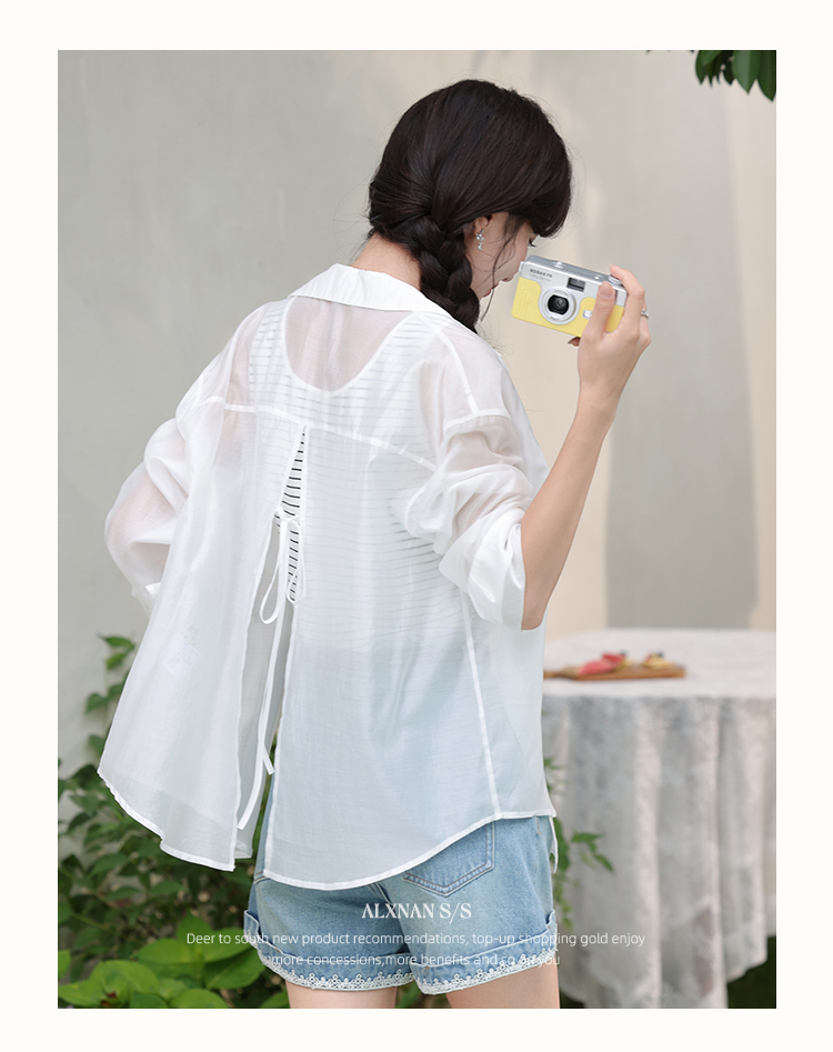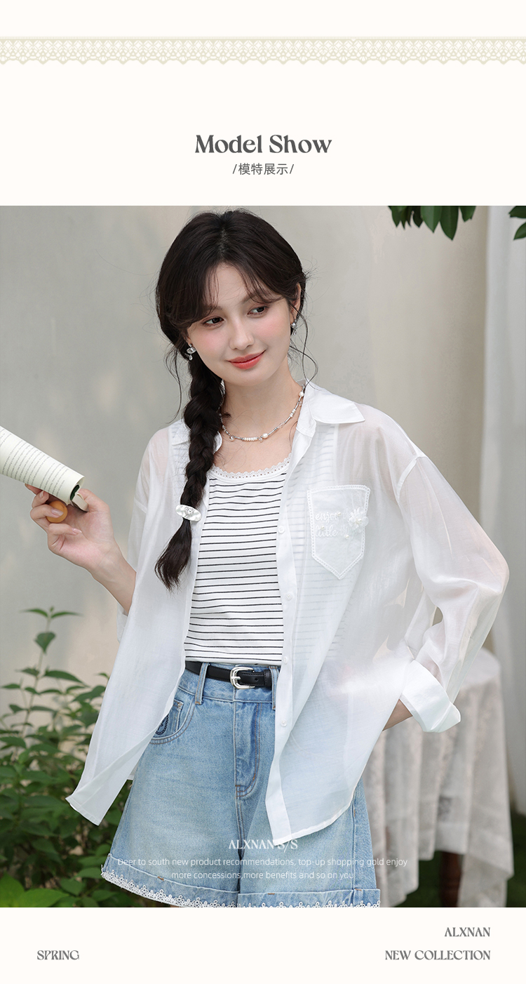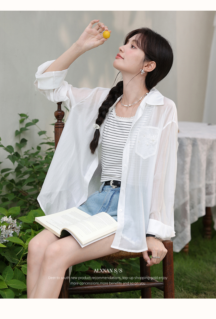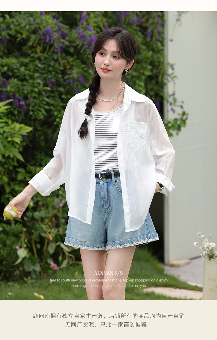 【6折秒杀】鹿向南「烂漫初夏」白色宽松外搭薄款防晒衬衫女夏季长袖开衫上衣L56307