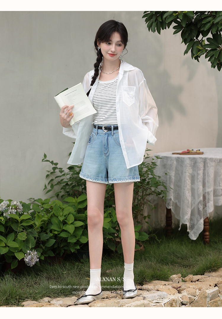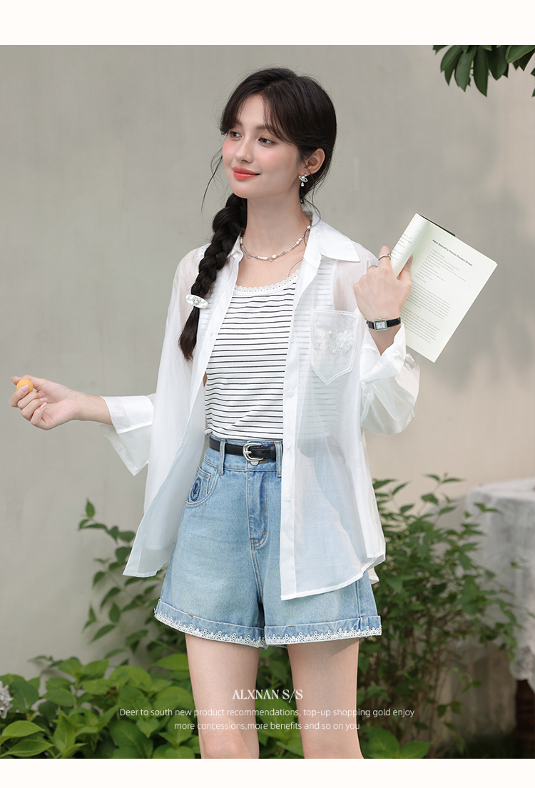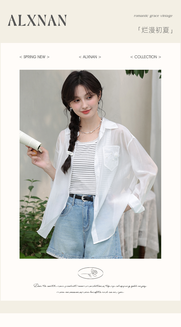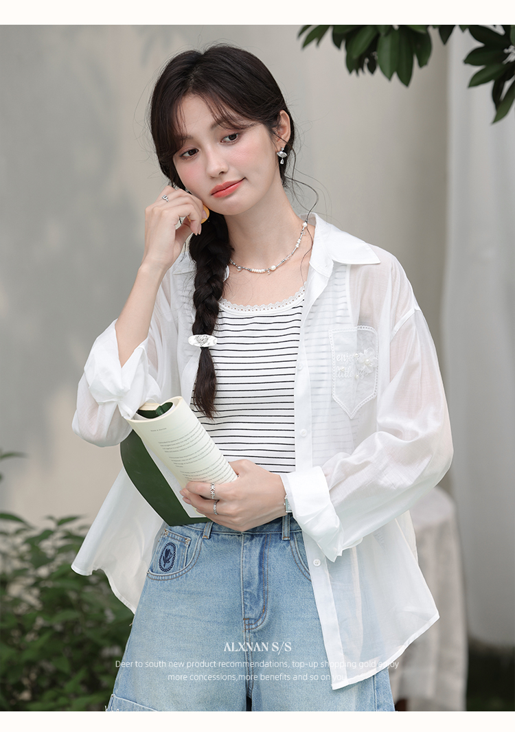 【6折秒杀】鹿向南「烂漫初夏」白色宽松外搭薄款防晒衬衫女夏季长袖开衫上衣L56307