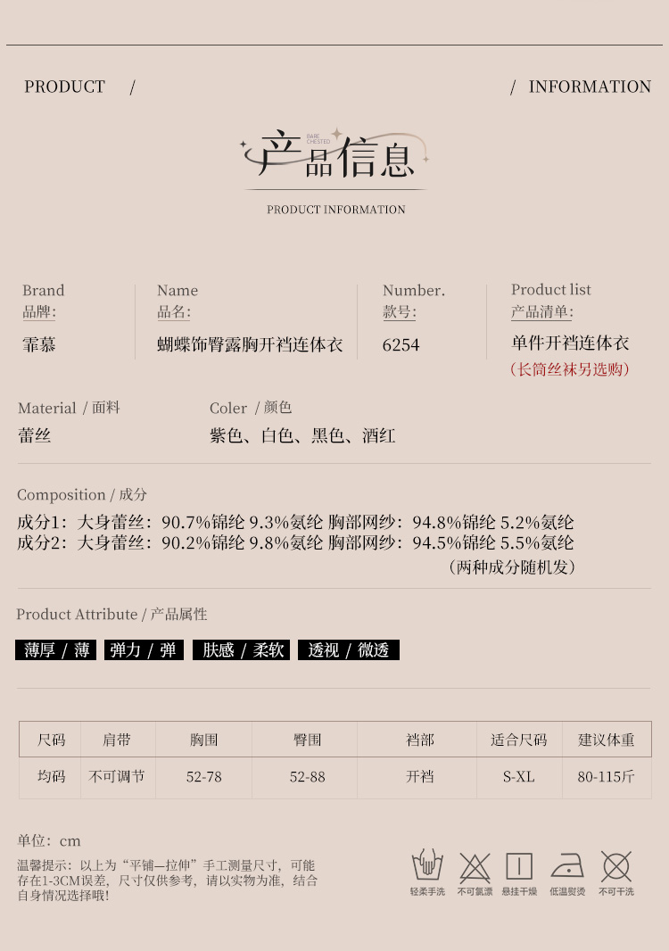 【霏慕】蝴蝶饰臀露胸开裆连体衣6254