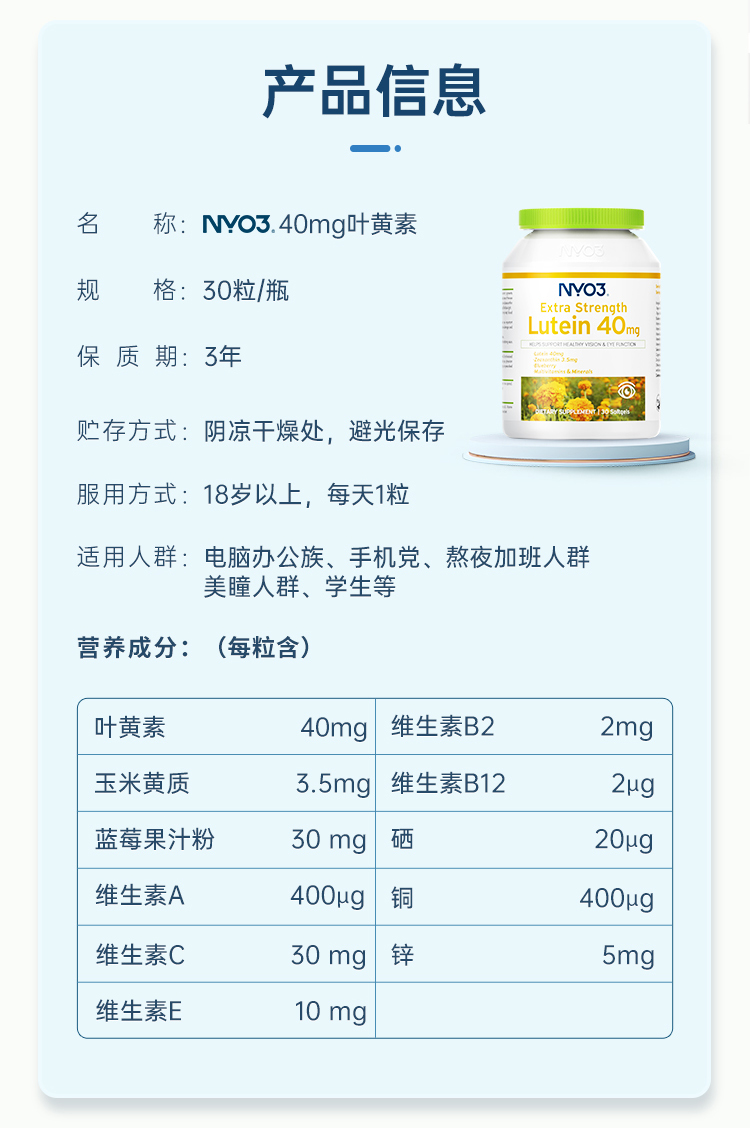 NYO3 蓝莓叶黄素30粒 每粒40mg