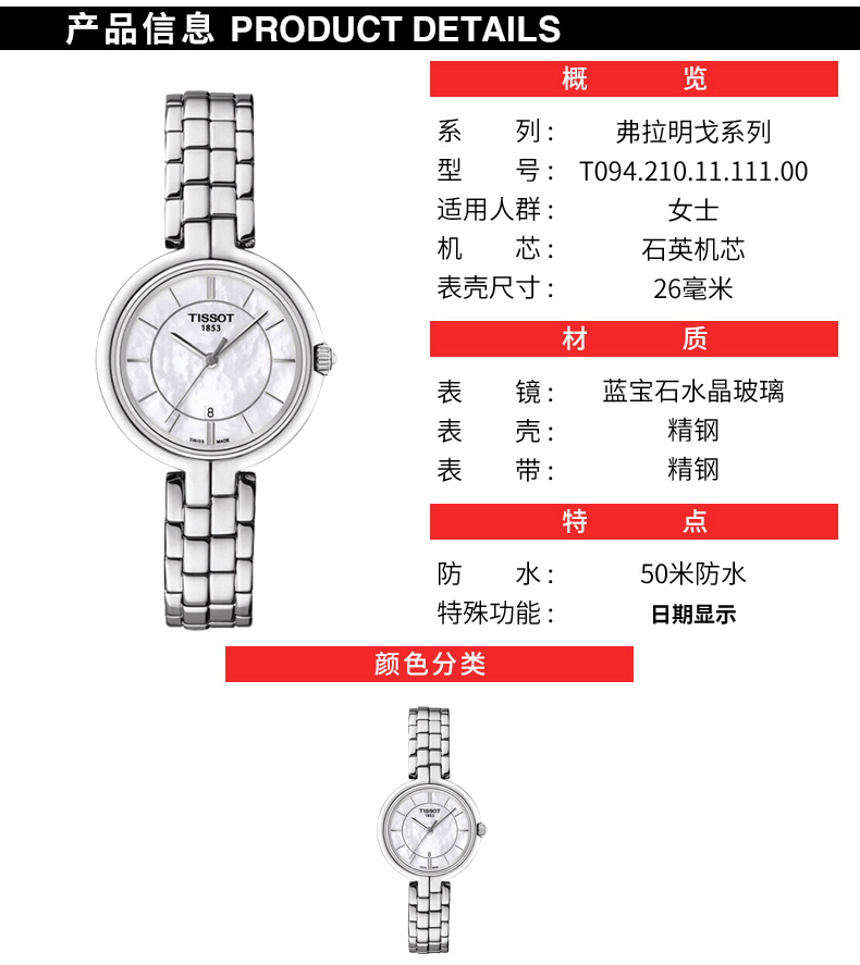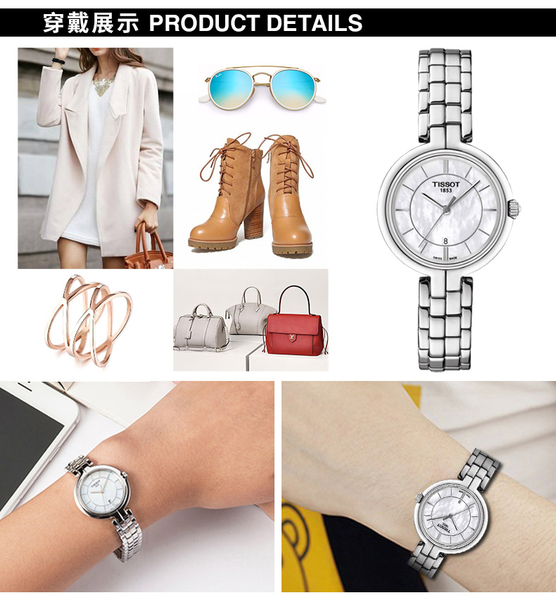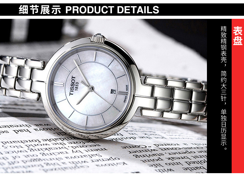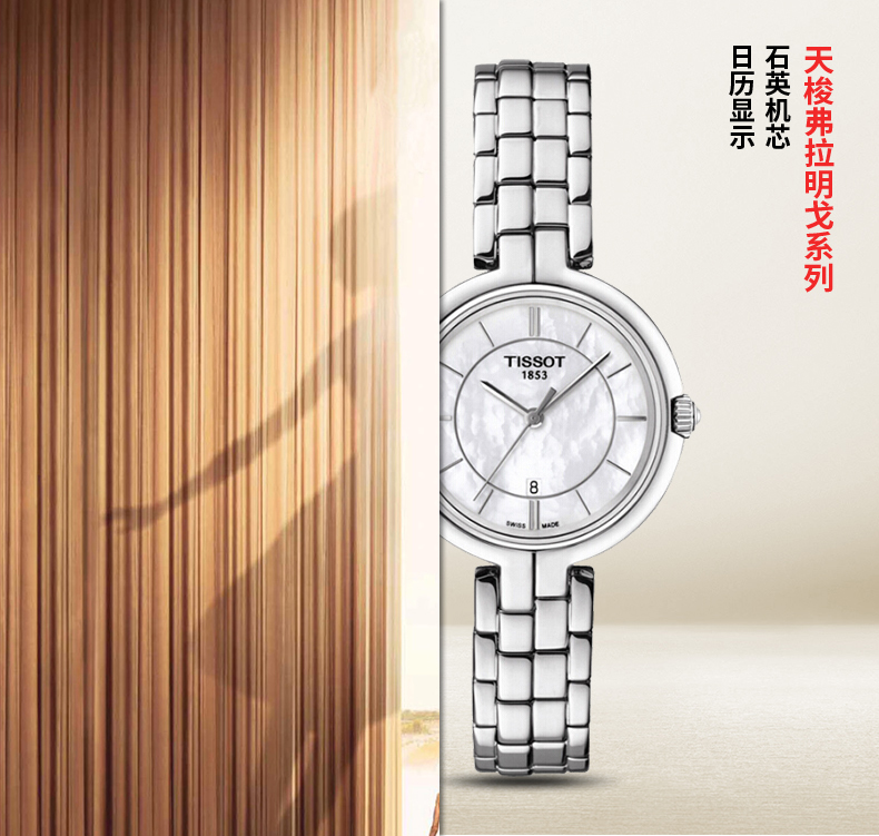 天梭Tissot弗拉明戈系列钢带石英女表白盘钢带 T094.210.11.111.00