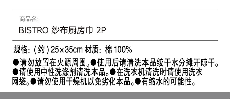 NITORI宜得利家居 厨房巾纯棉清洁布擦碗布擦手巾纱布厨房巾