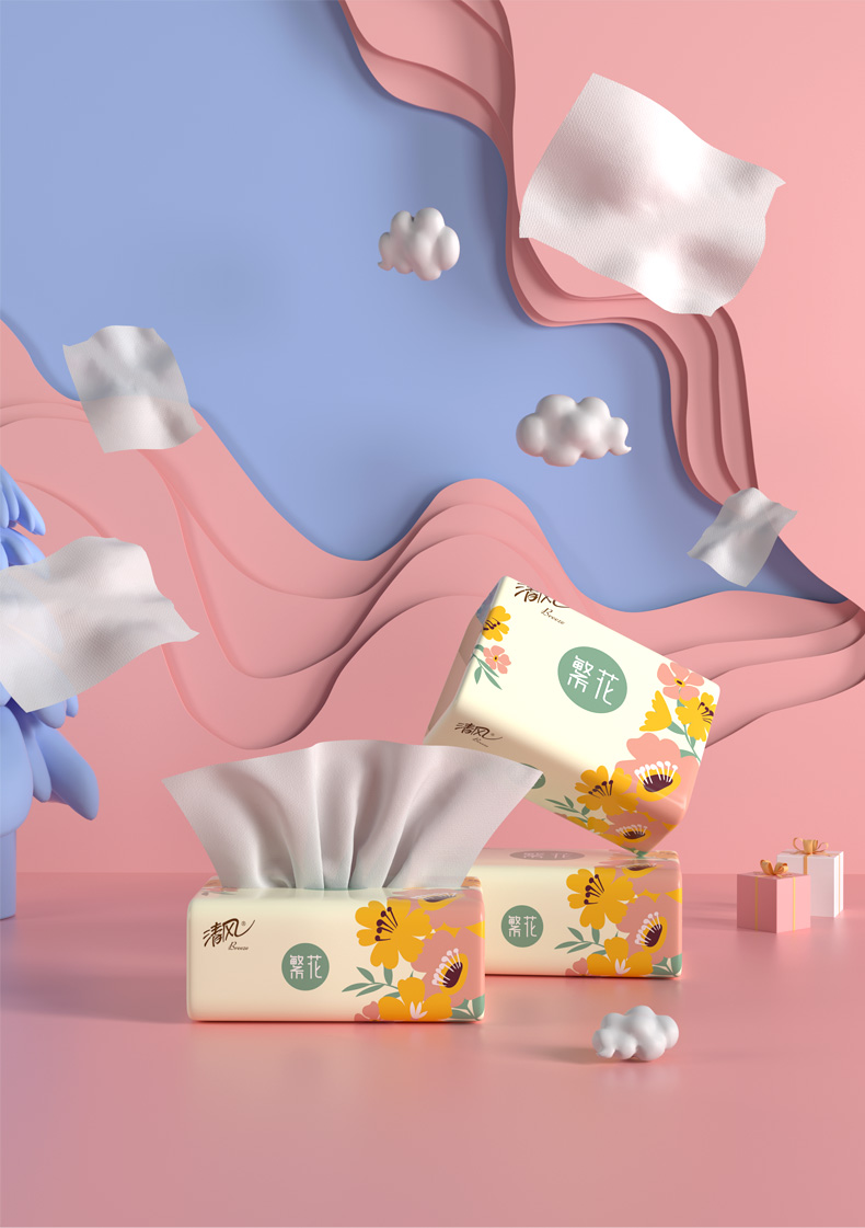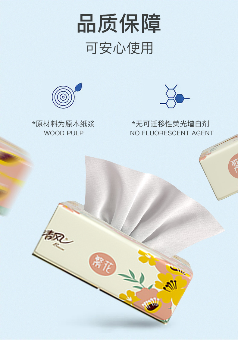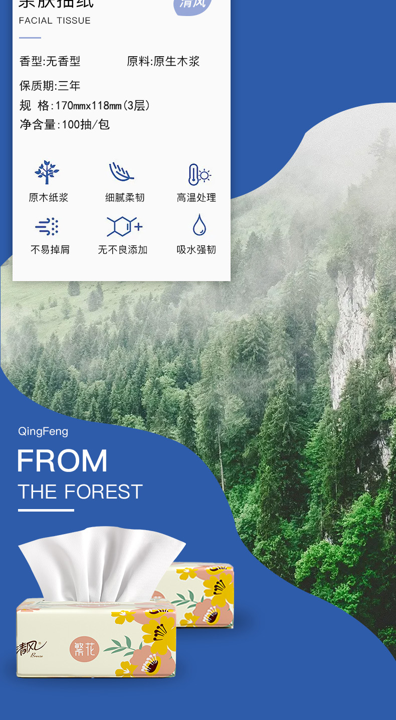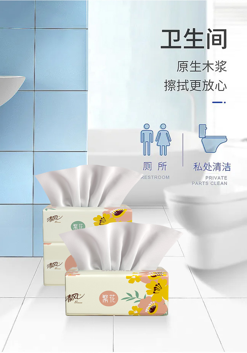 清风繁花系列3层100抽6连包软抽纸