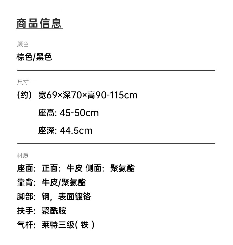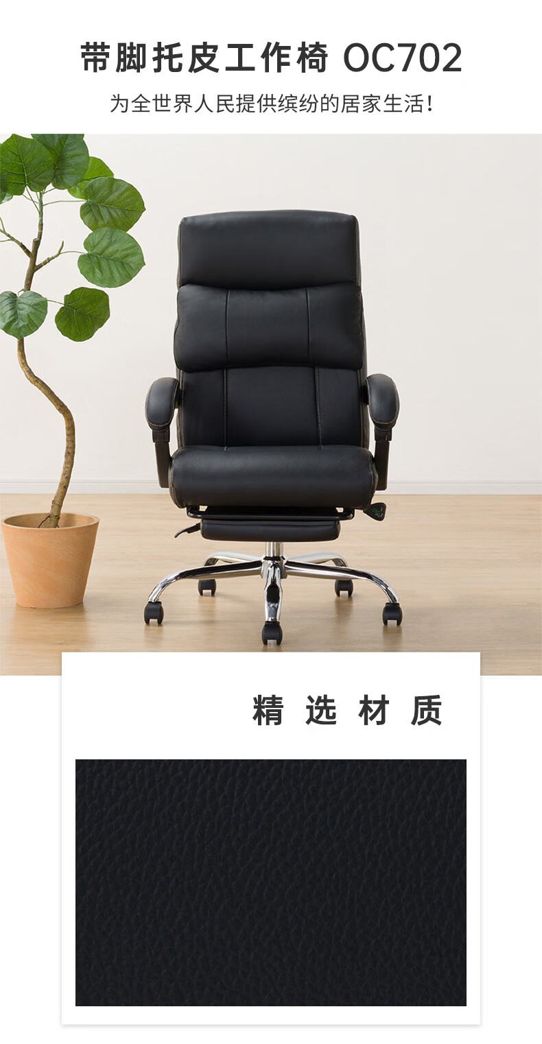 【家具】带脚托皮工作椅 OC702 棕色/黑色