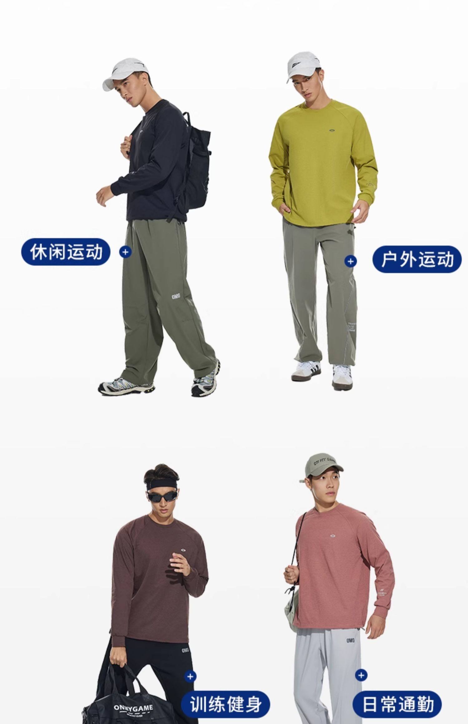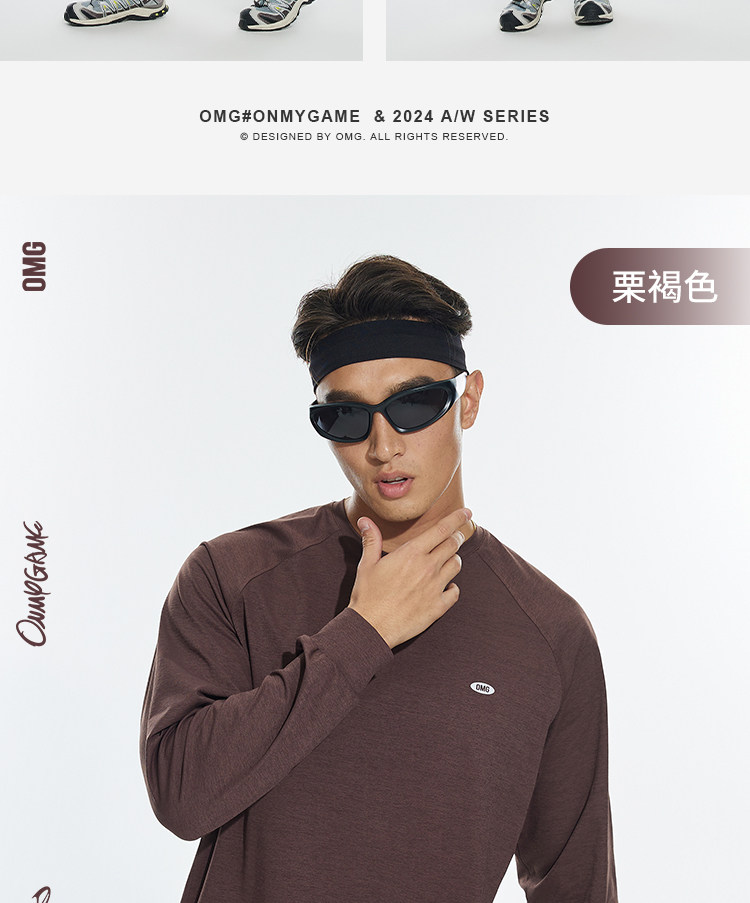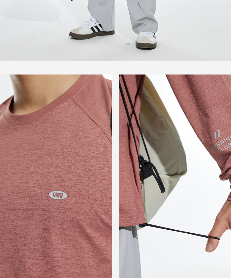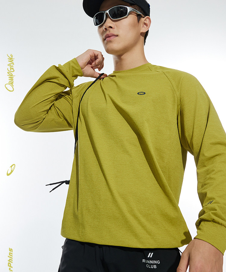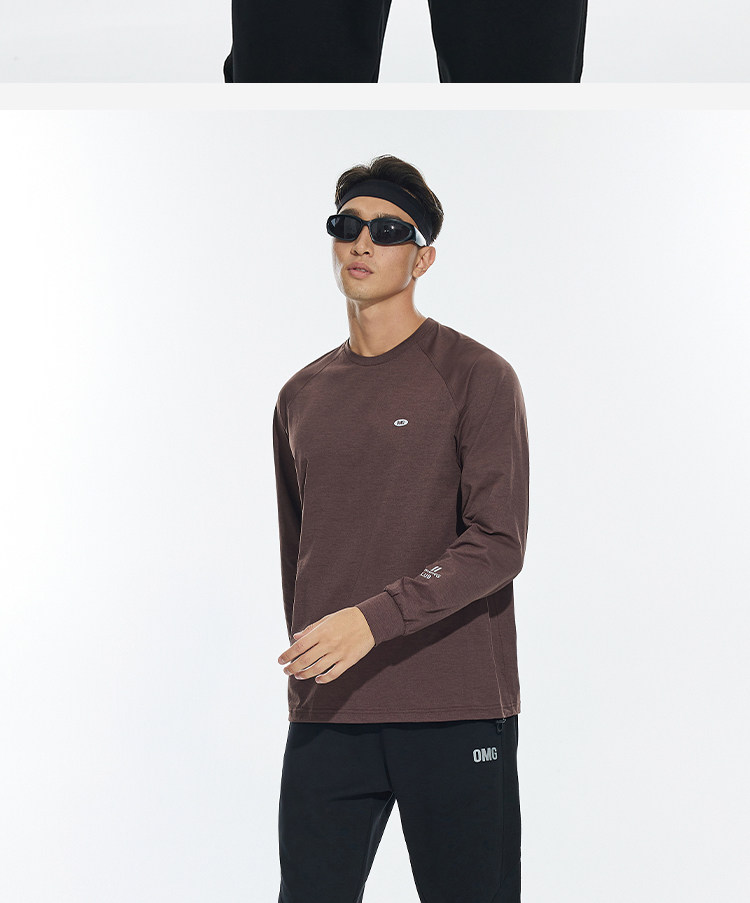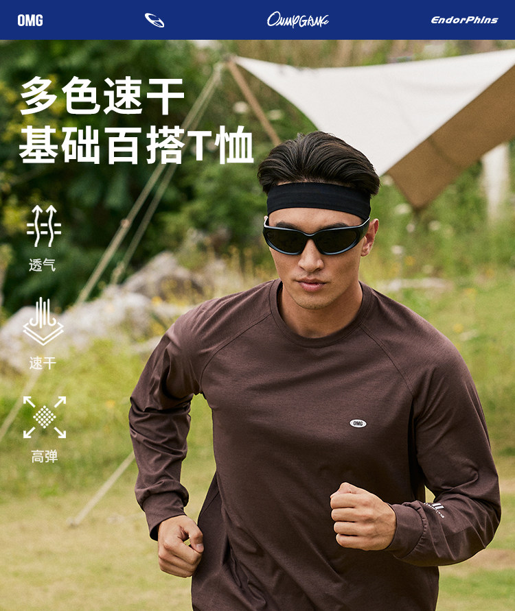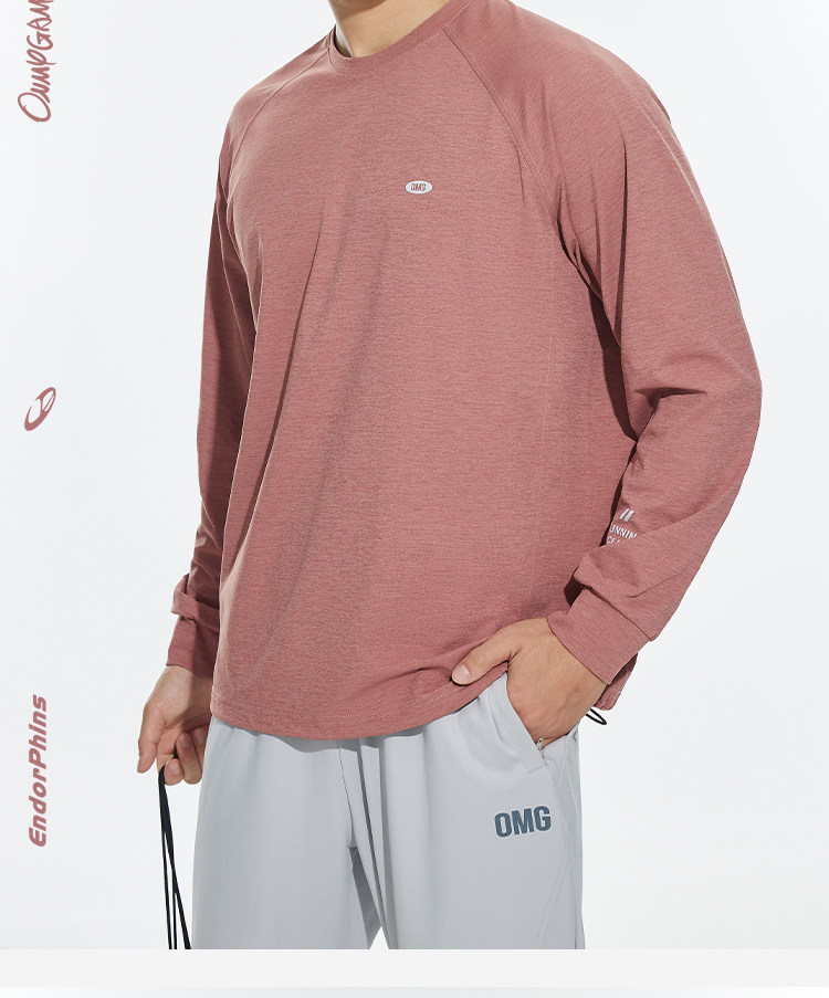 OMG运动 春秋圆领长袖T恤男印花训练上衣健身衣服跑步速干打底衫