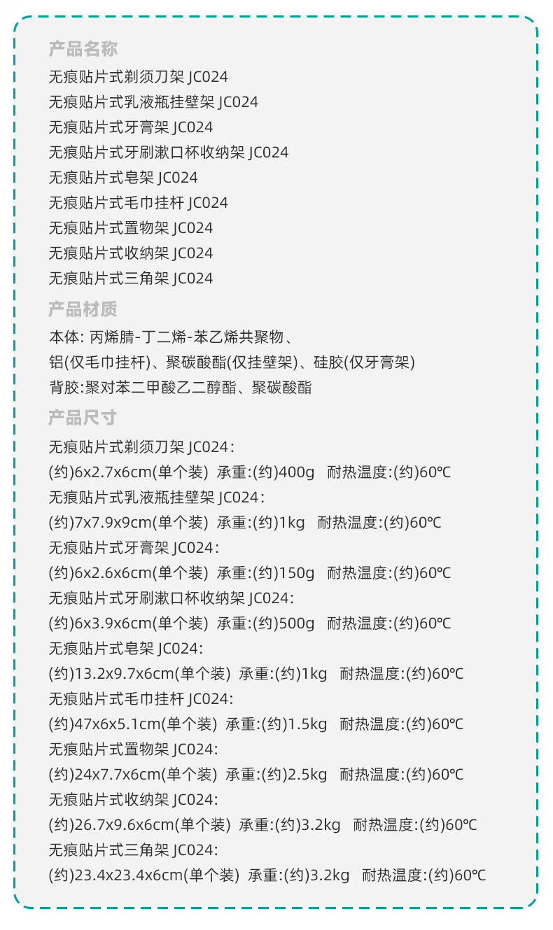 家用日常收纳无痕贴片式收纳架置物架JC024