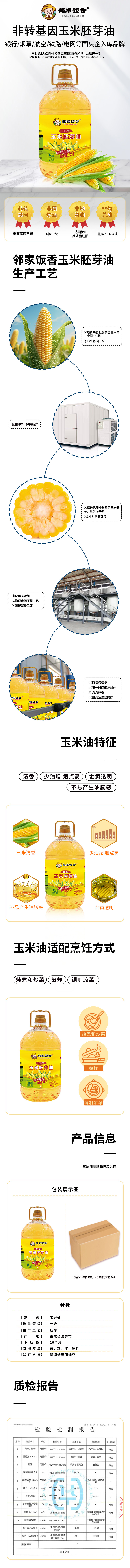 邻家饭香 非转基因 物理压榨一级玉米胚芽油 5L 桶 LJFX135-Y