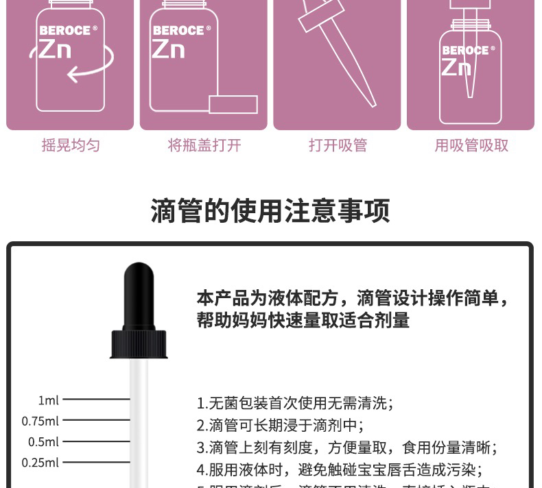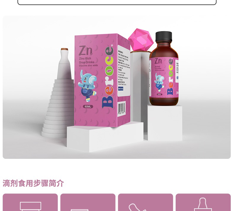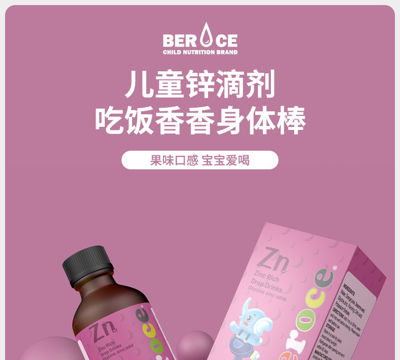 Beroce班兰喜果味锌Zn甘氨酸锌滴剂儿童液体锌 美国进口60ml