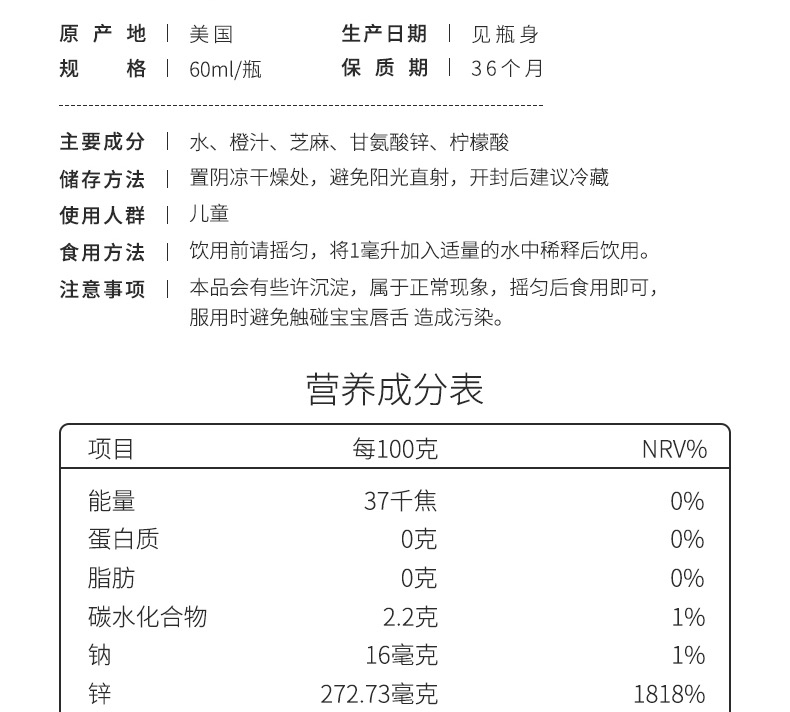 果味口感 甘氨酸锌温和不刺激 宝宝爱喝