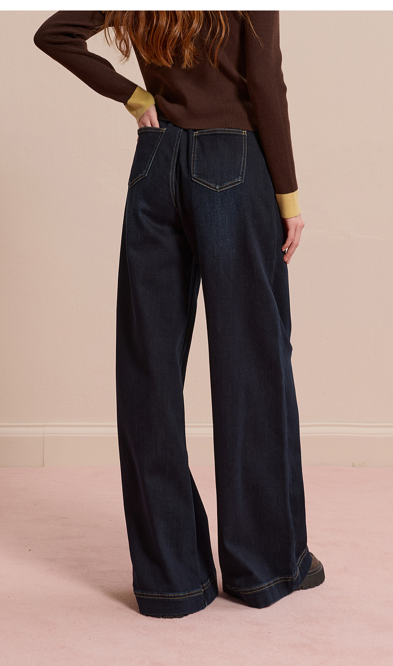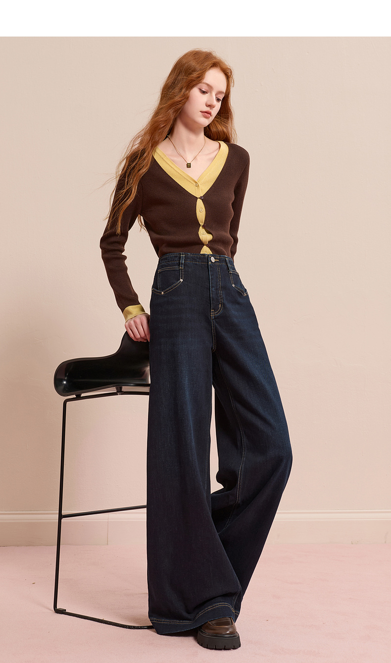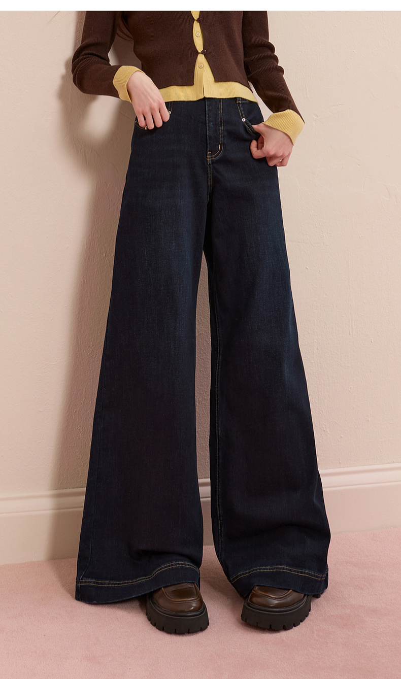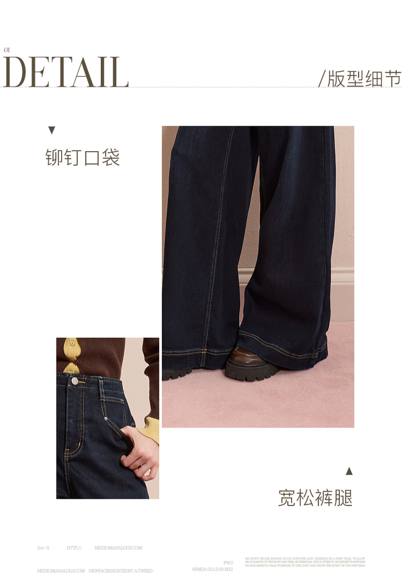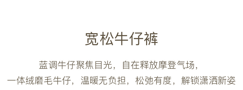 三彩2025冬季新款宽松牛仔裤休闲阔腿裤一体绒磨毛长裤复古水洗M