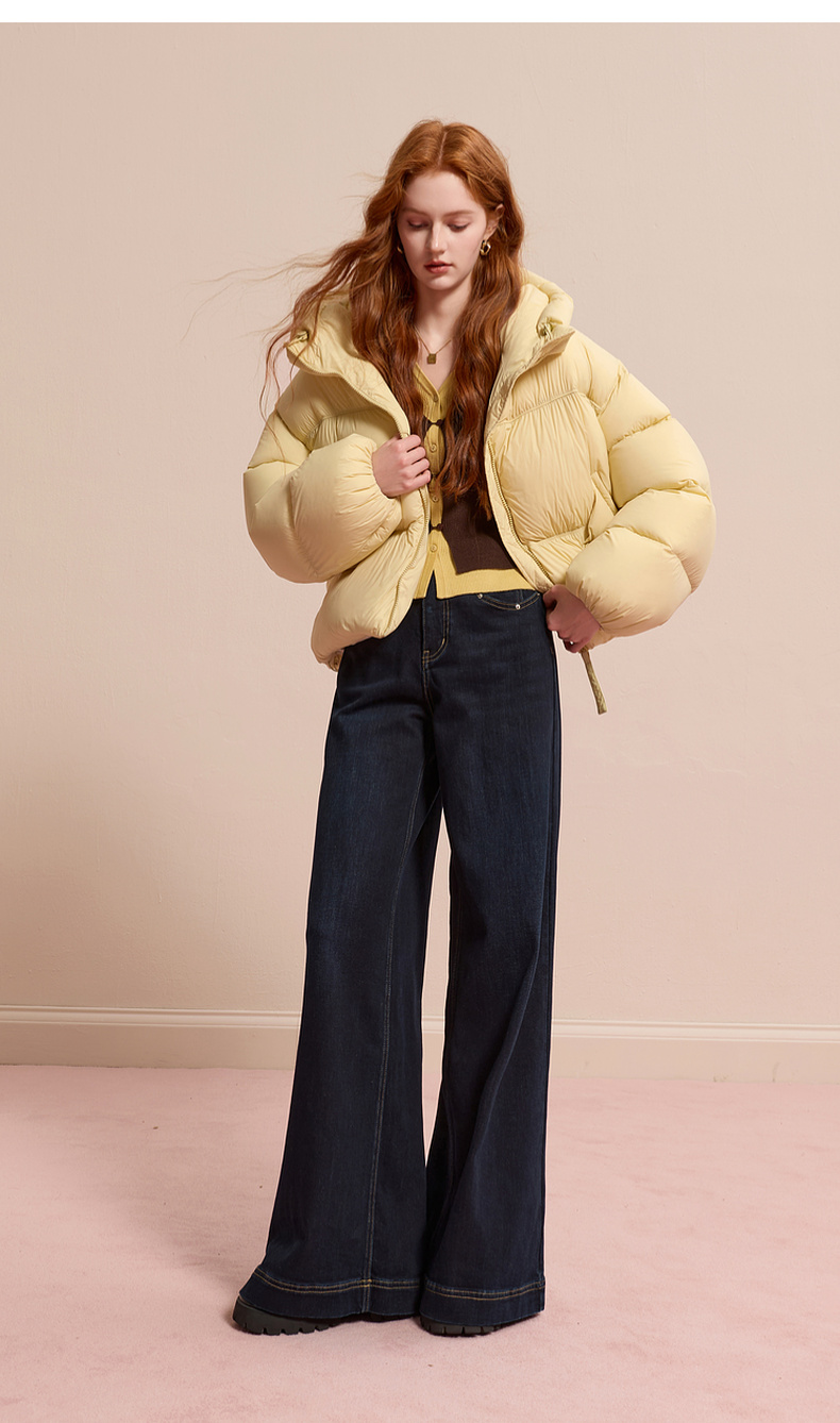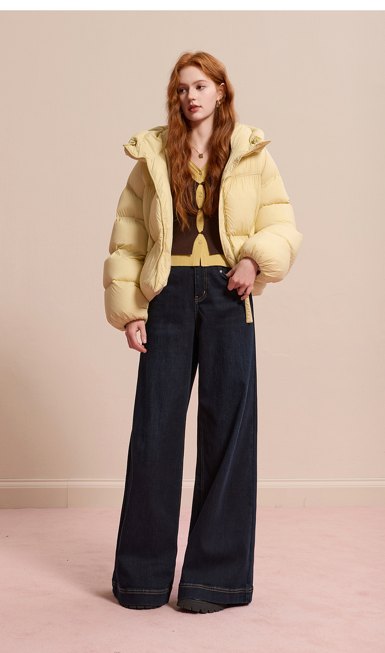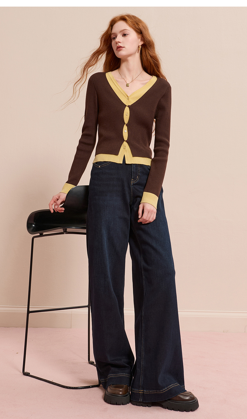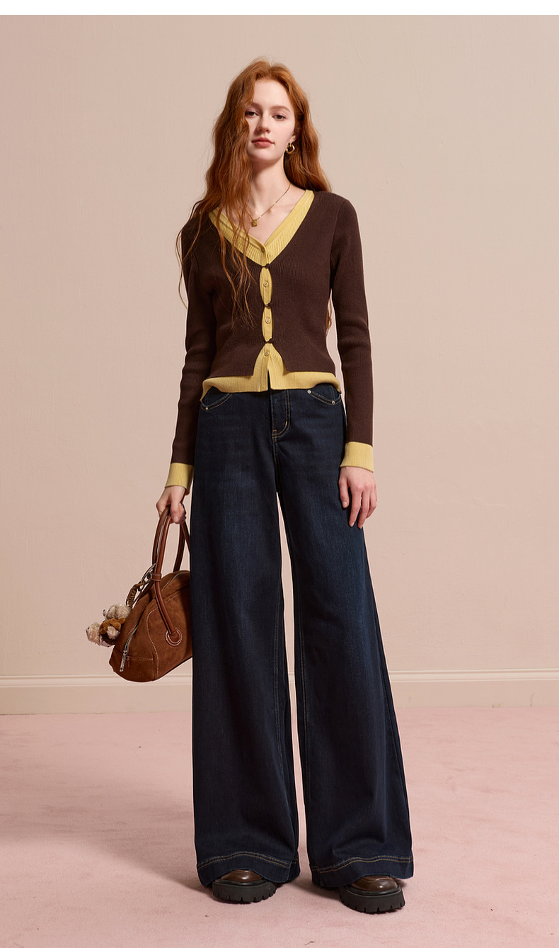 三彩2025冬季新款宽松牛仔裤休闲阔腿裤一体绒磨毛长裤复古水洗M