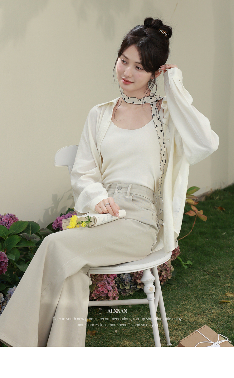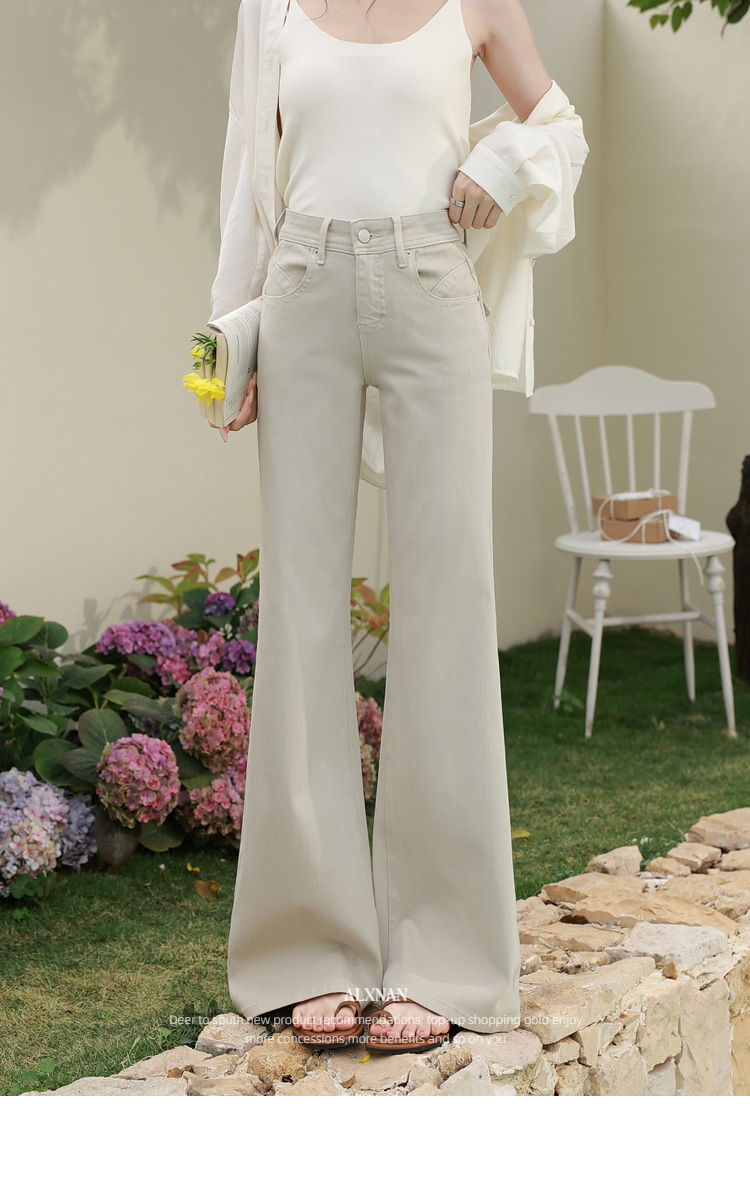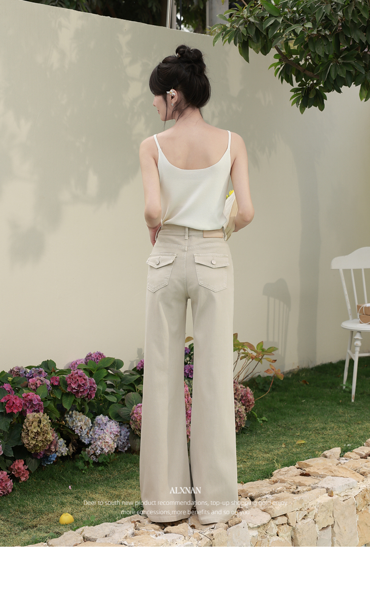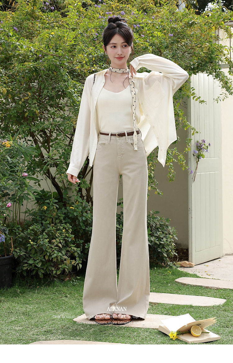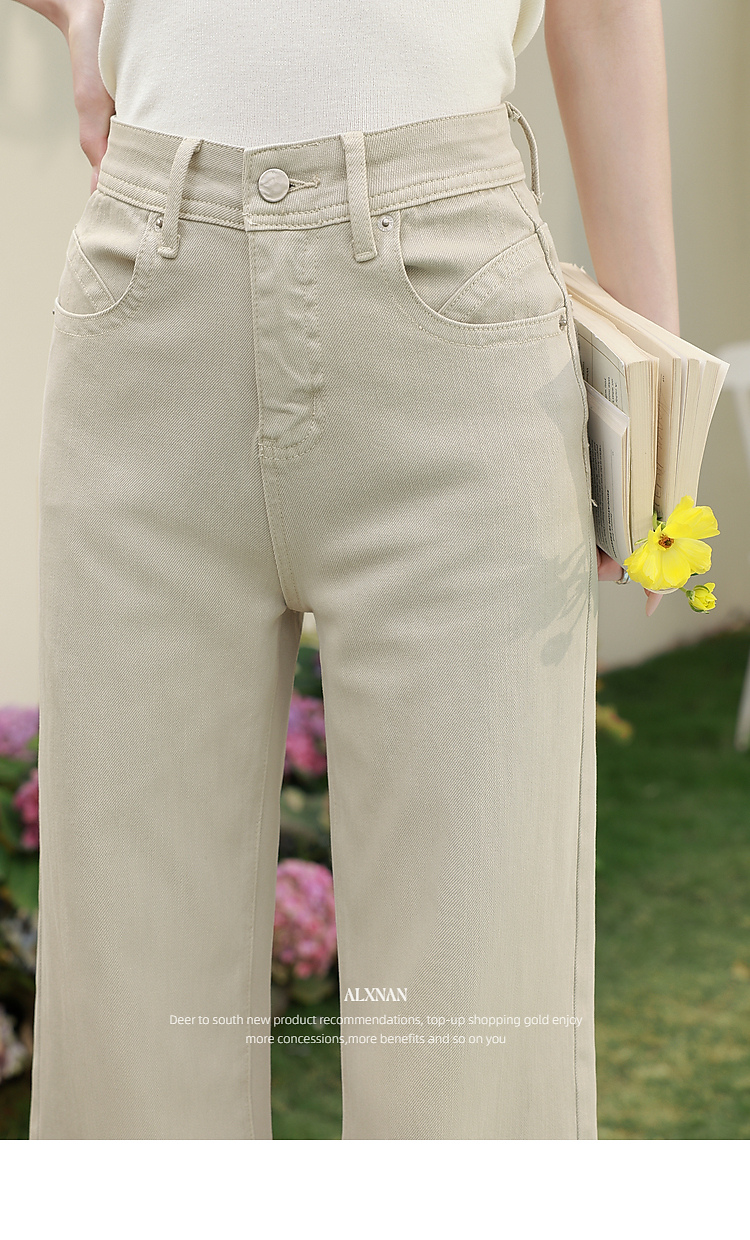 鹿向南「悠然型格」卡其色高腰牛仔裤女春季版型超好看的微喇裤