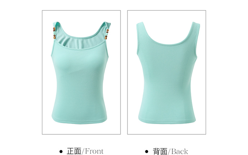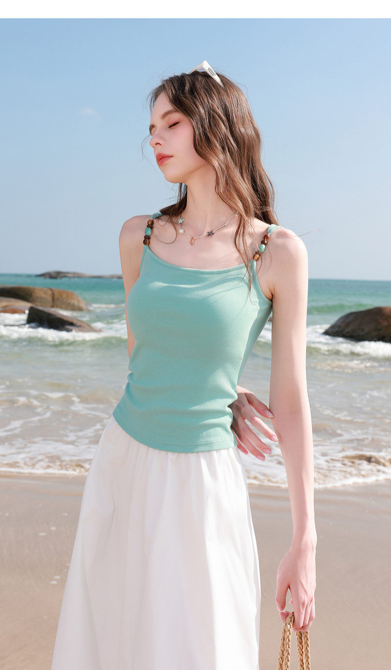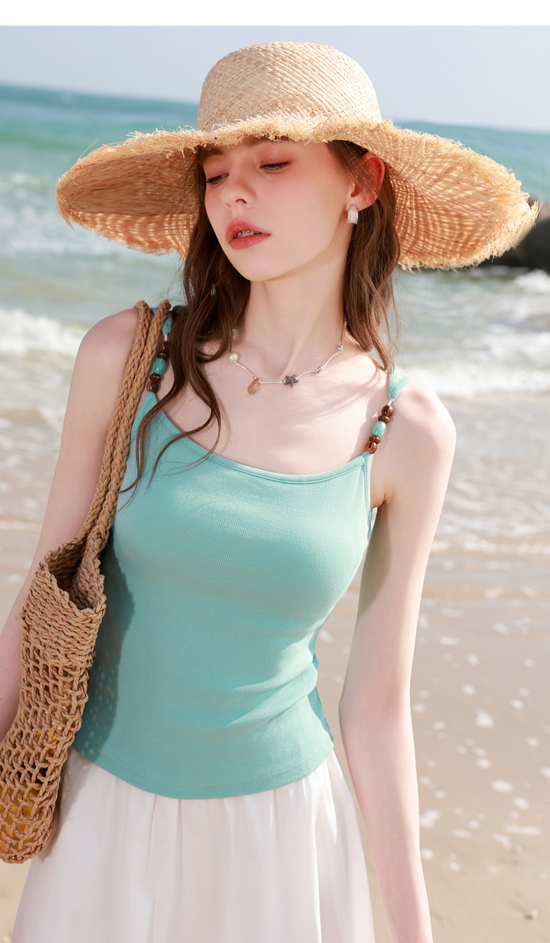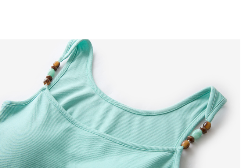 三彩2026春季新款自带胸垫修身短款串珠吊带背心文胸一体美背M