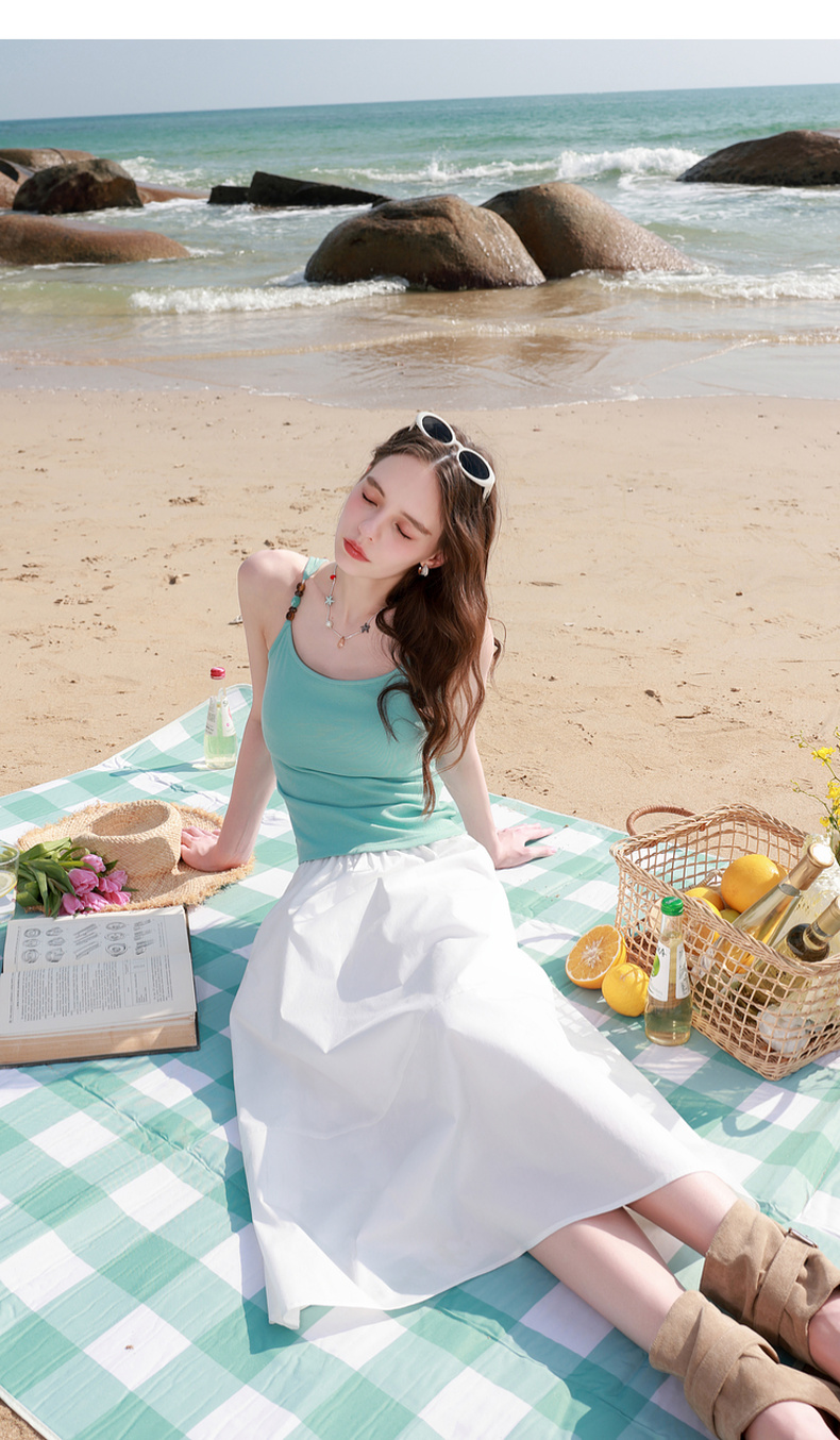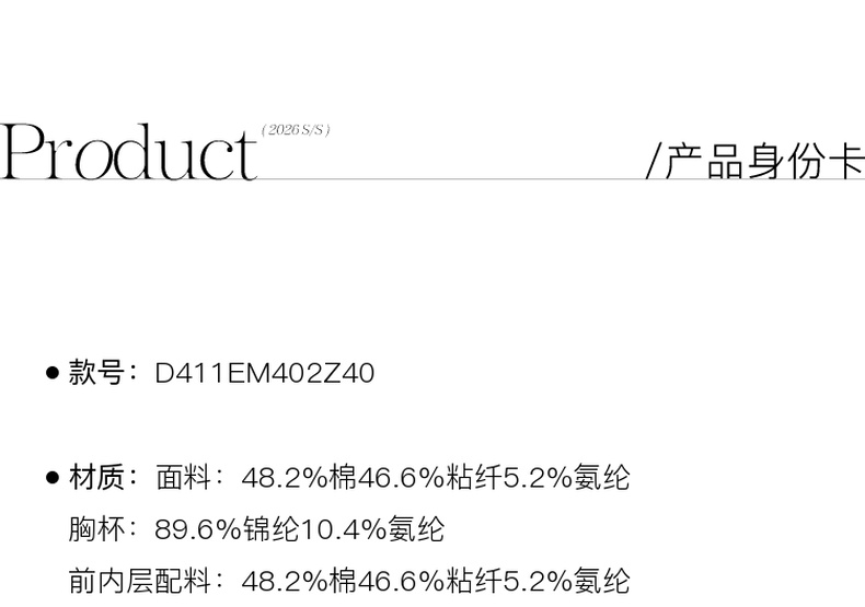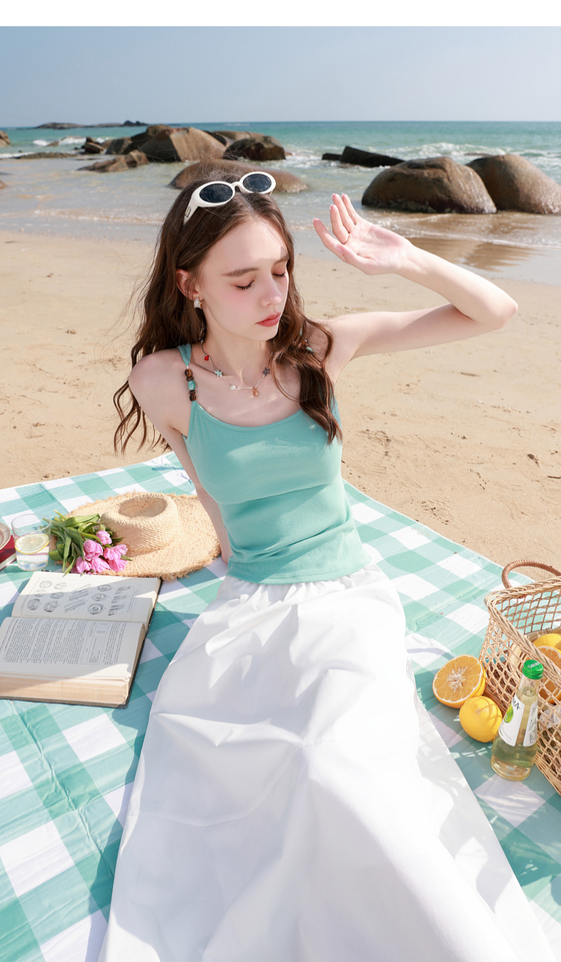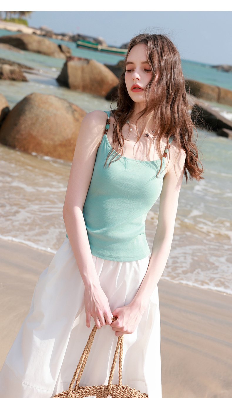 三彩2026春季新款自带胸垫修身短款串珠吊带背心文胸一体美背M