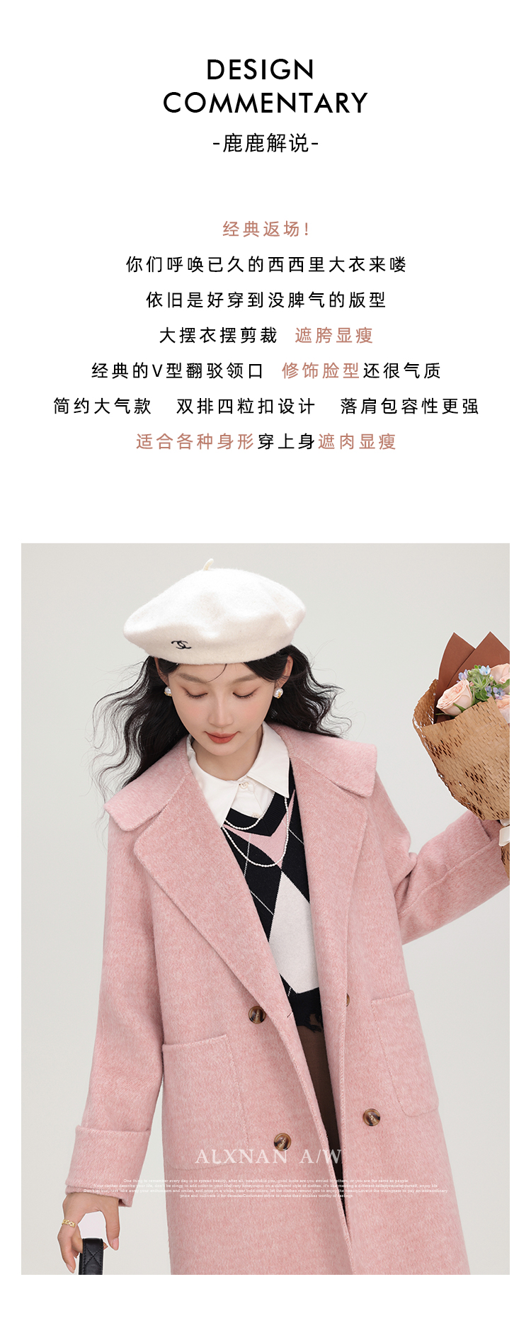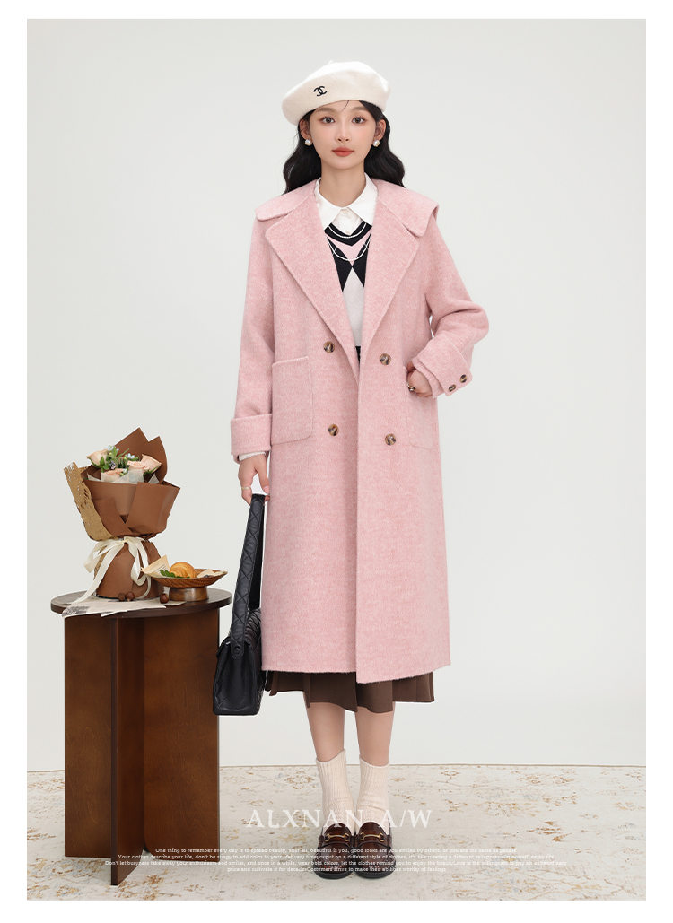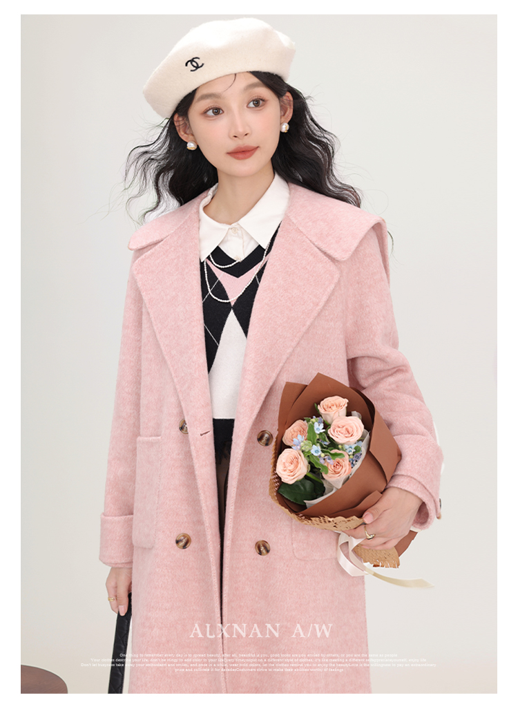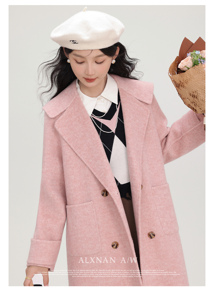 鹿向南《苏黎世少女》双面呢手工重工大衣女新款气质通勤毛呢外套