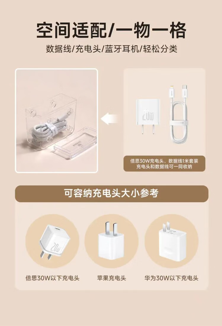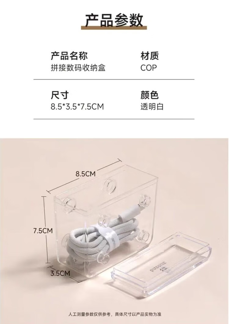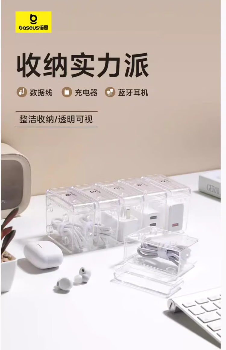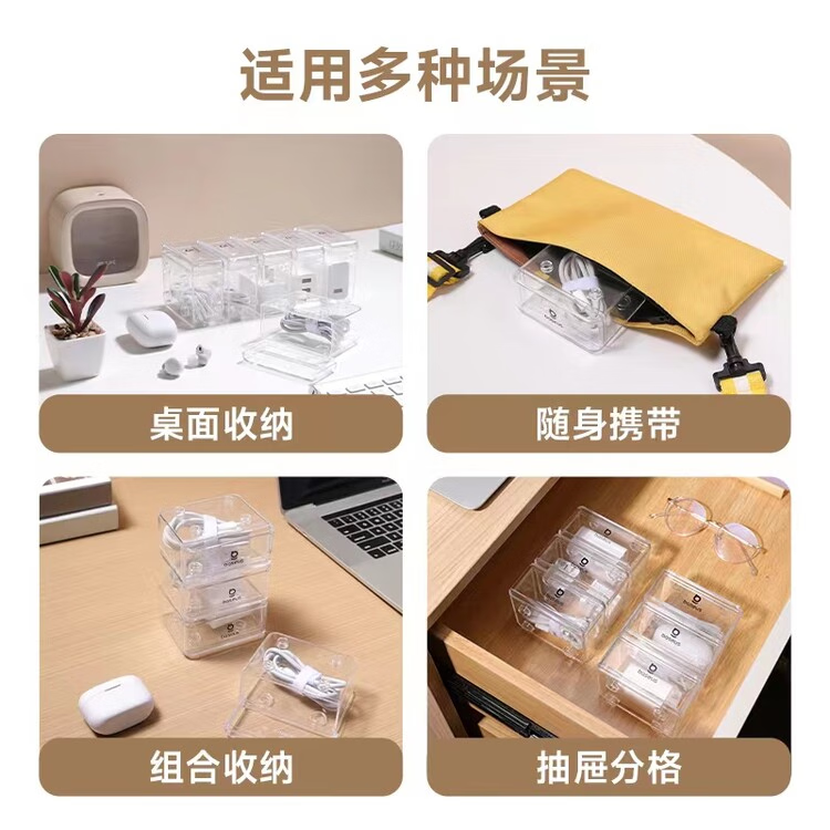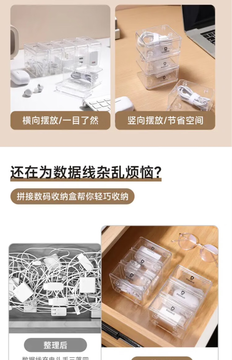 倍思 拼接数据线收纳盒 数码配件橡皮筋内存卡首饰收纳 多盒可拼接
