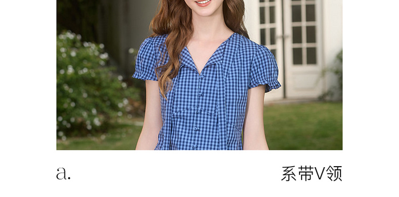 【100棉】三彩独醒2026春季新款格纹衬衫复古少女感V领小衫上衣F