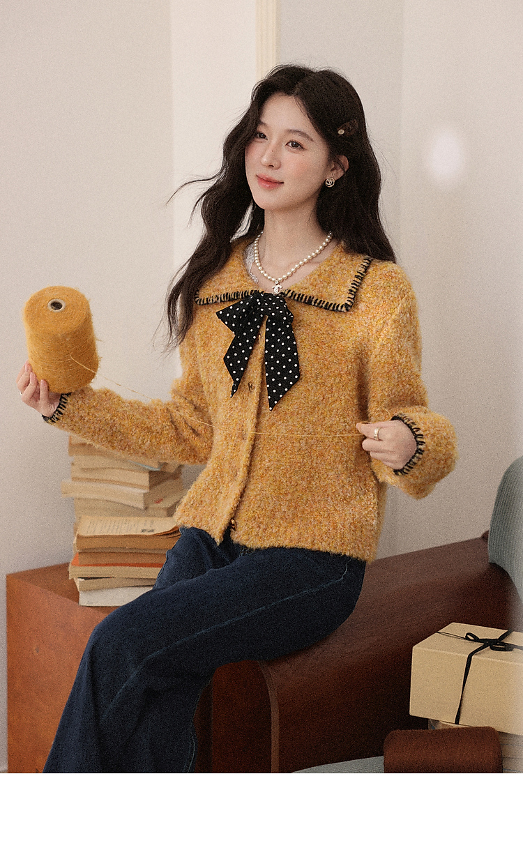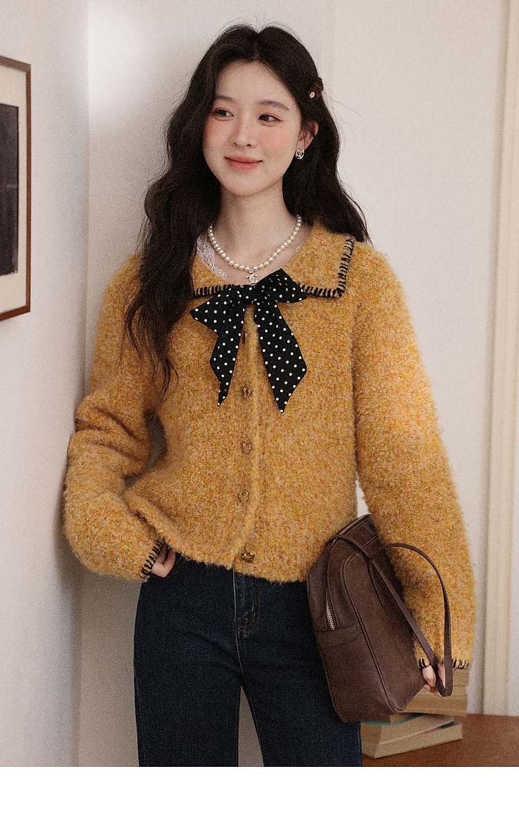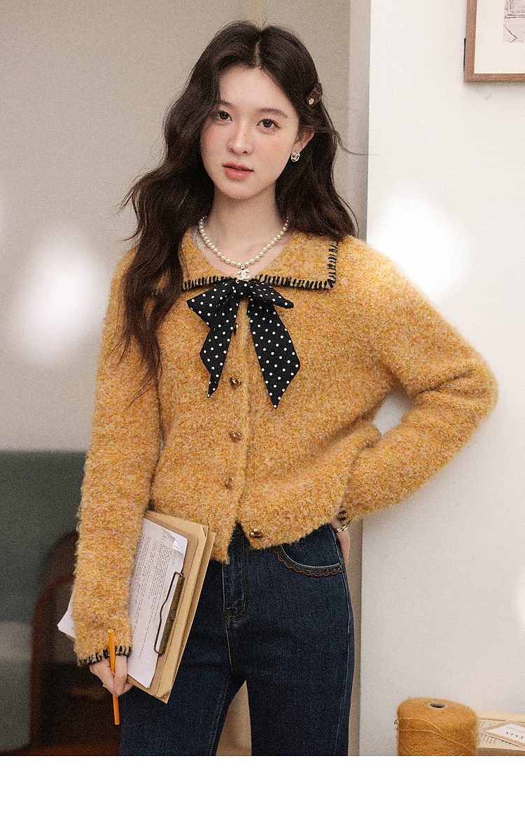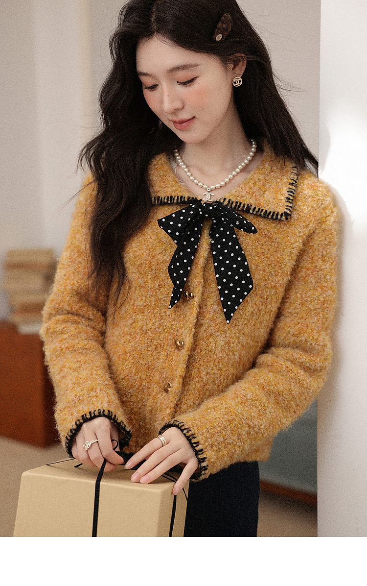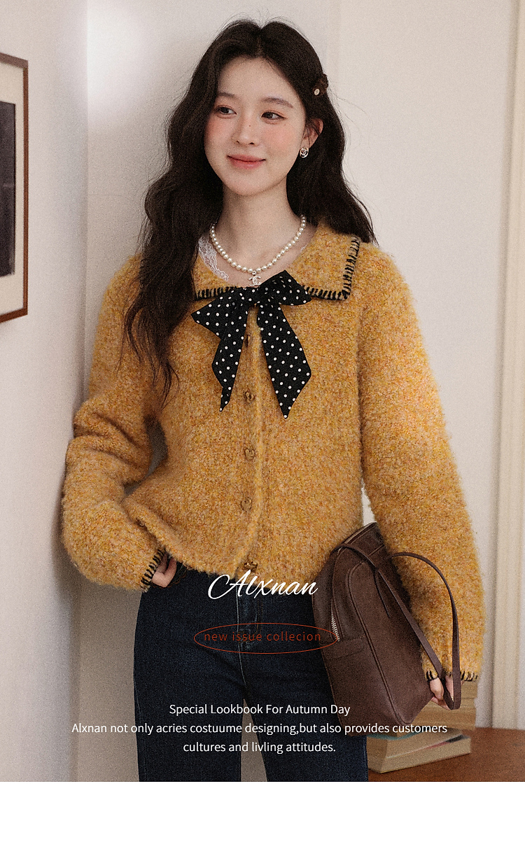 鹿向南「南瓜可可」黄色毛衣法式开衫女秋冬季宽松小众复古风上衣