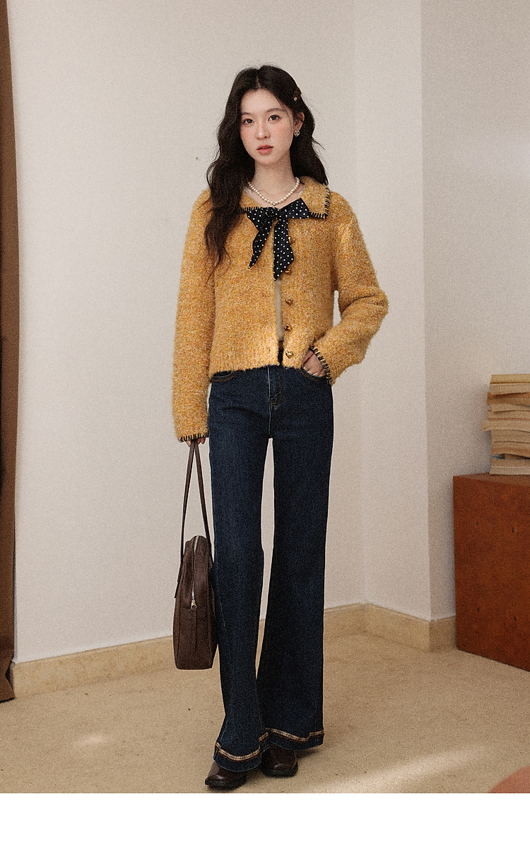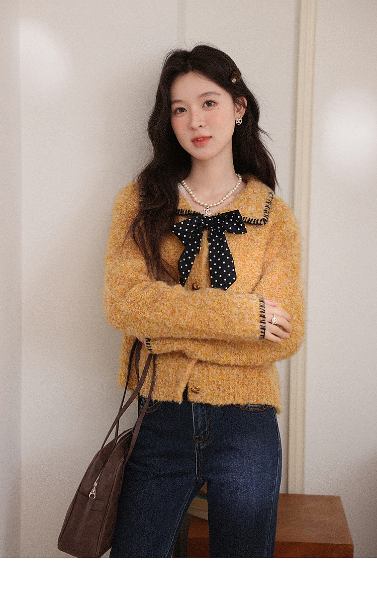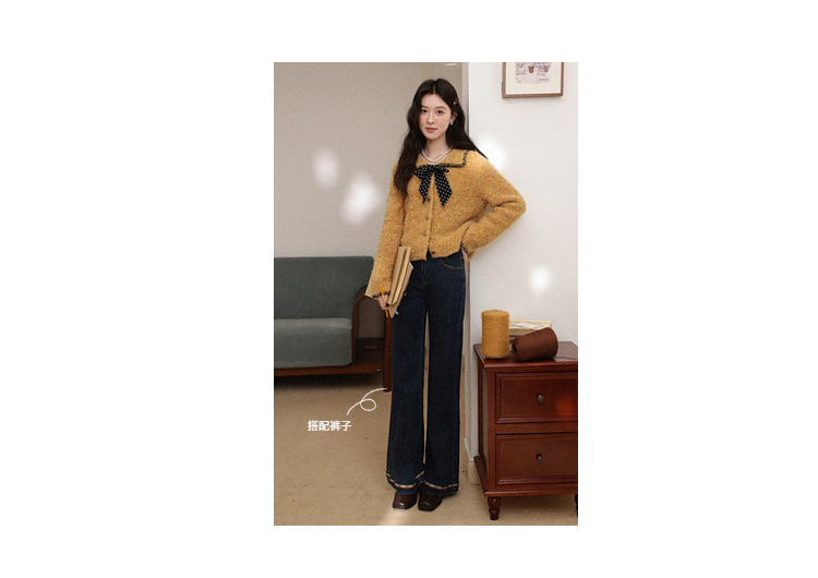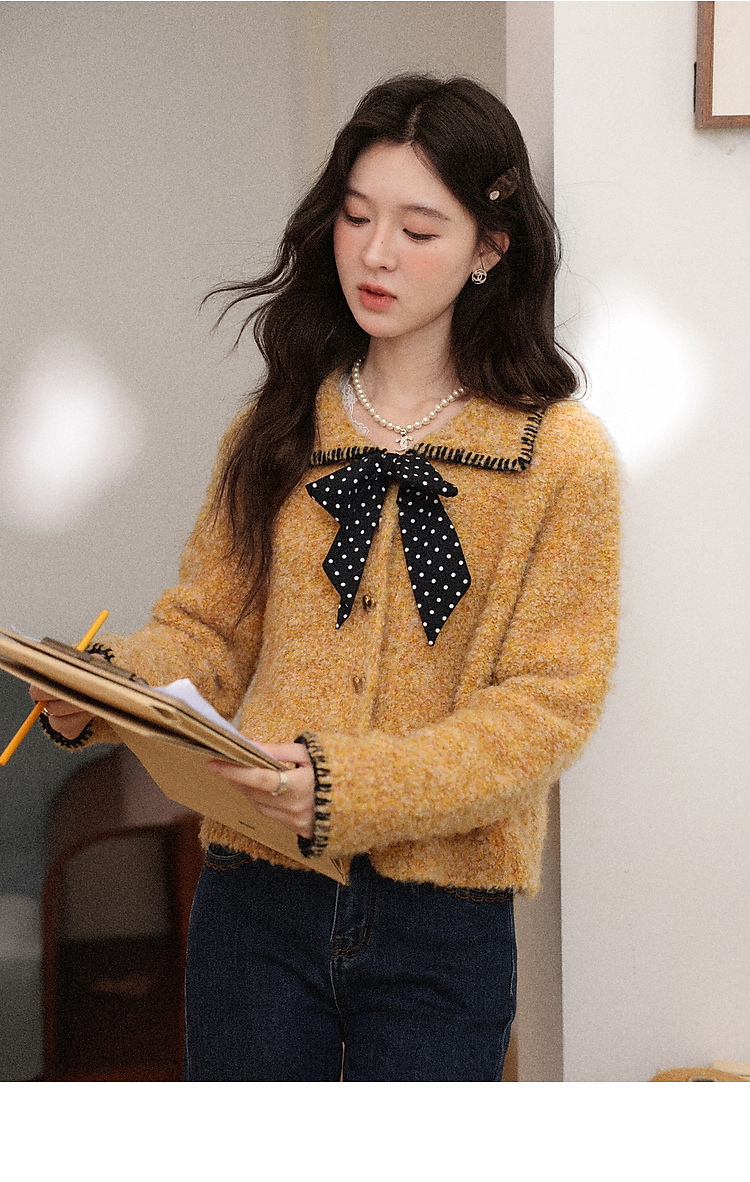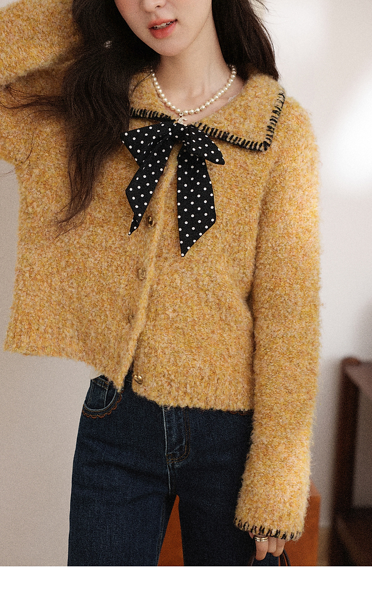 鹿向南「南瓜可可」黄色毛衣法式开衫女秋冬季宽松小众复古风上衣