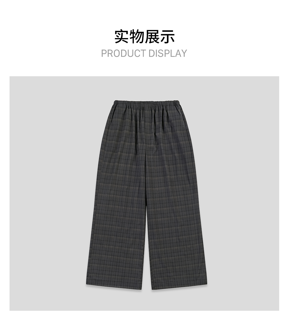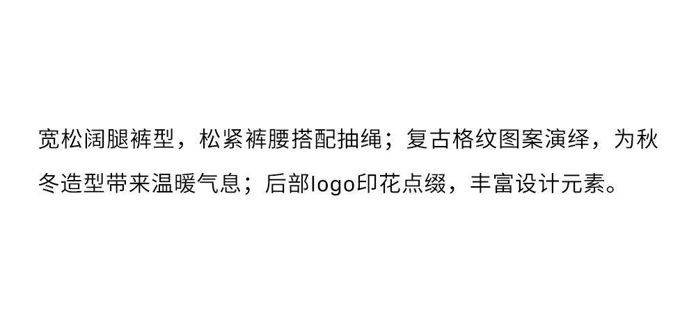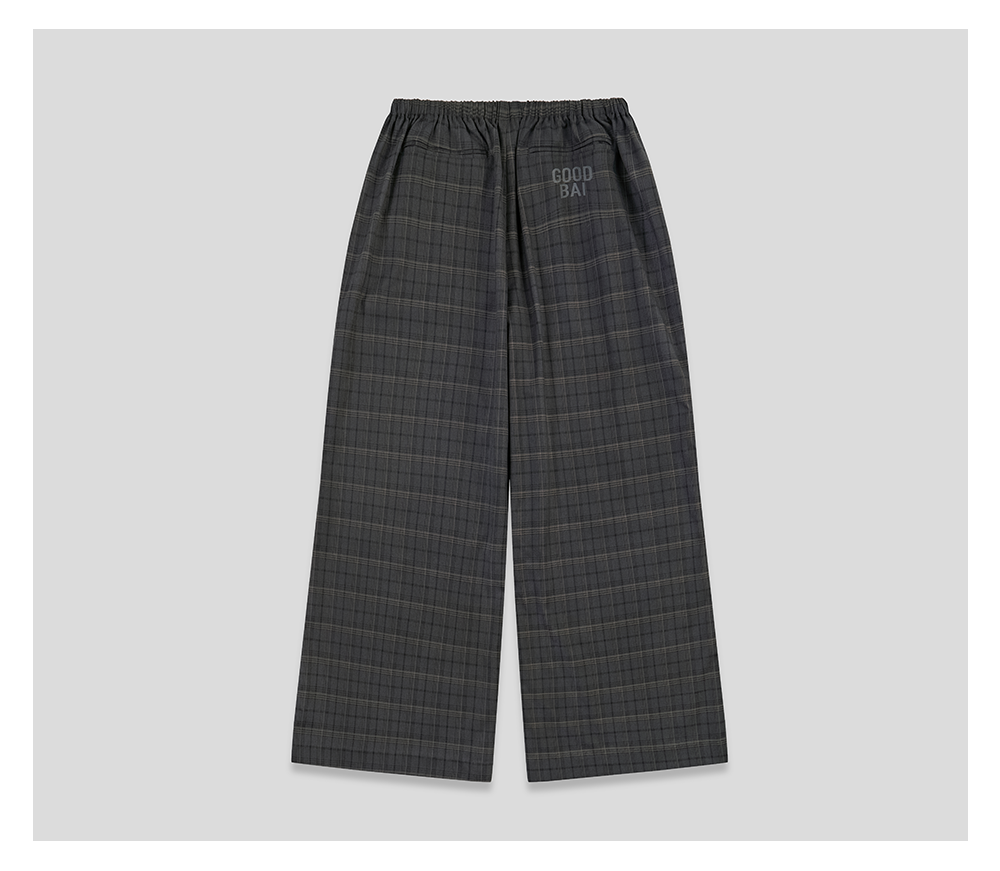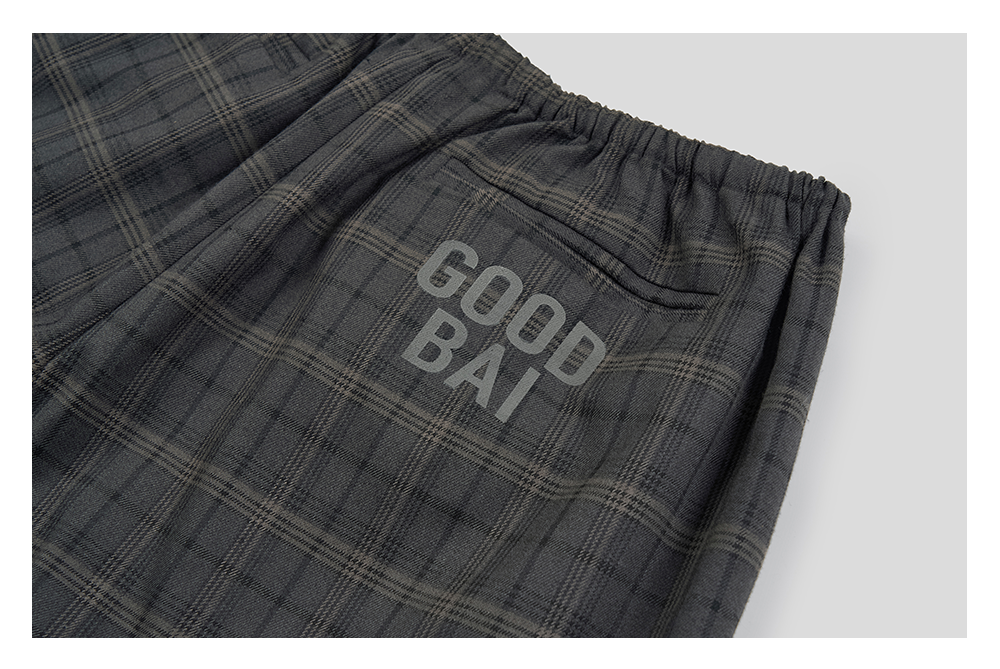 GOODBAI 粗体logo印花格纹收腰抽绳阔腿休闲长裤