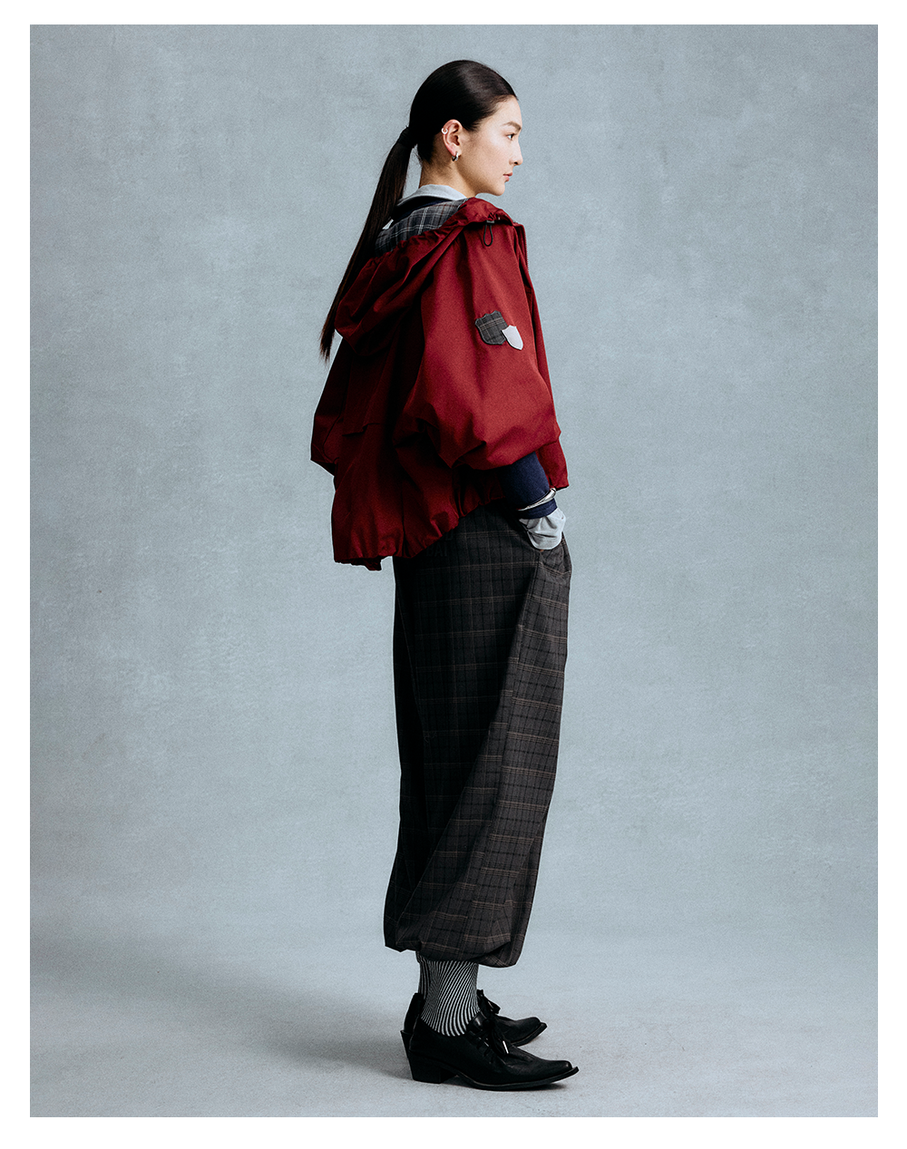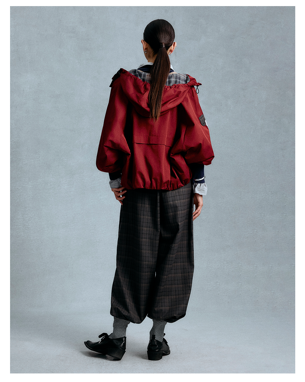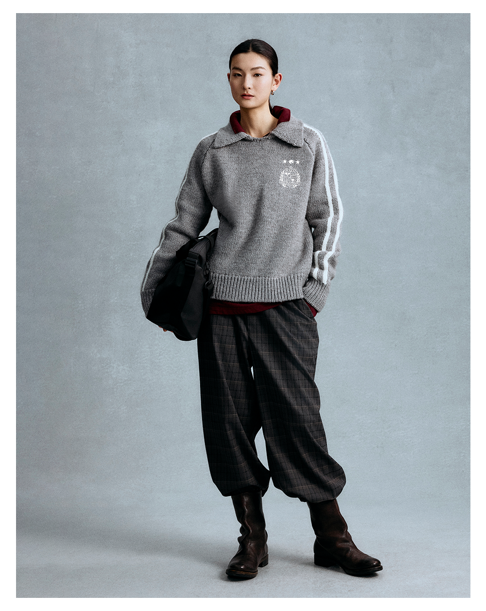 GOODBAI 粗体logo印花格纹收腰抽绳阔腿休闲长裤