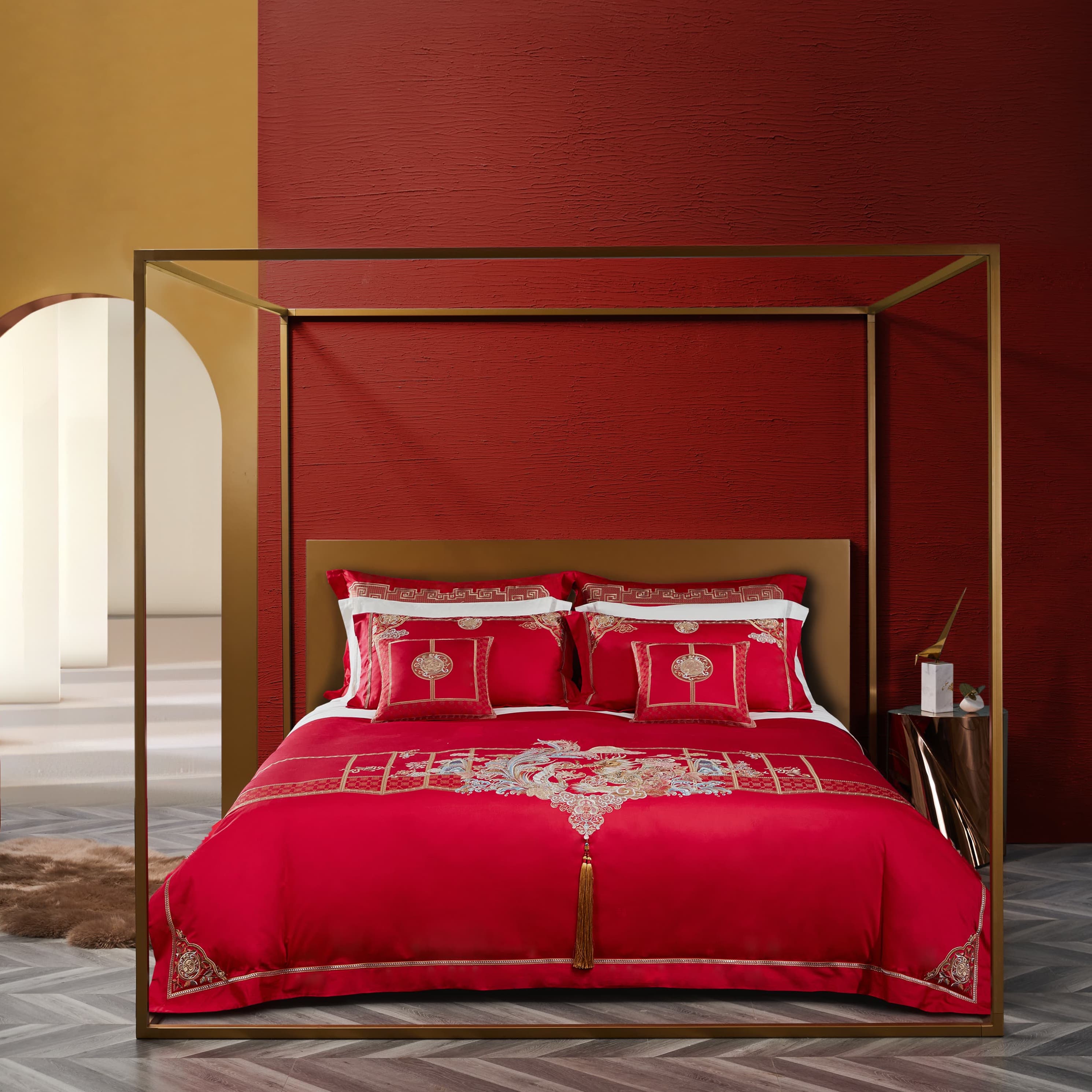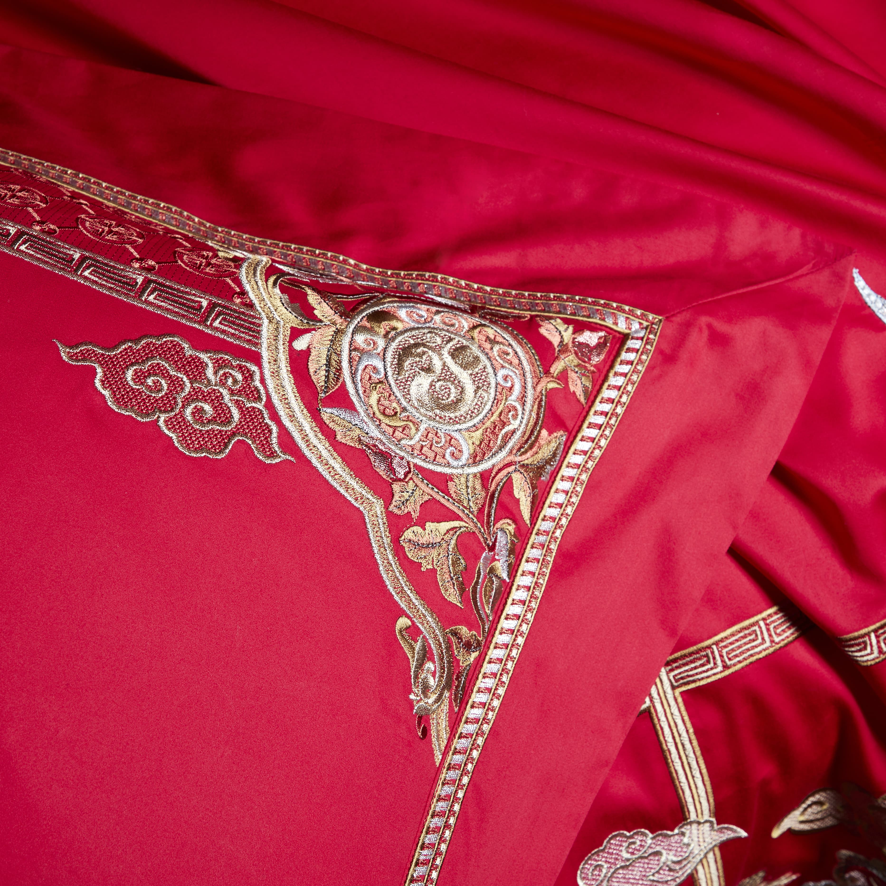 恐龙家纺XX 【祥瑞频开】60S全棉缎纹婚庆六件套(线下专柜款)