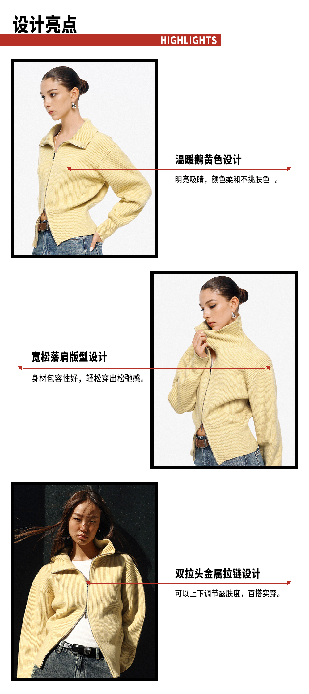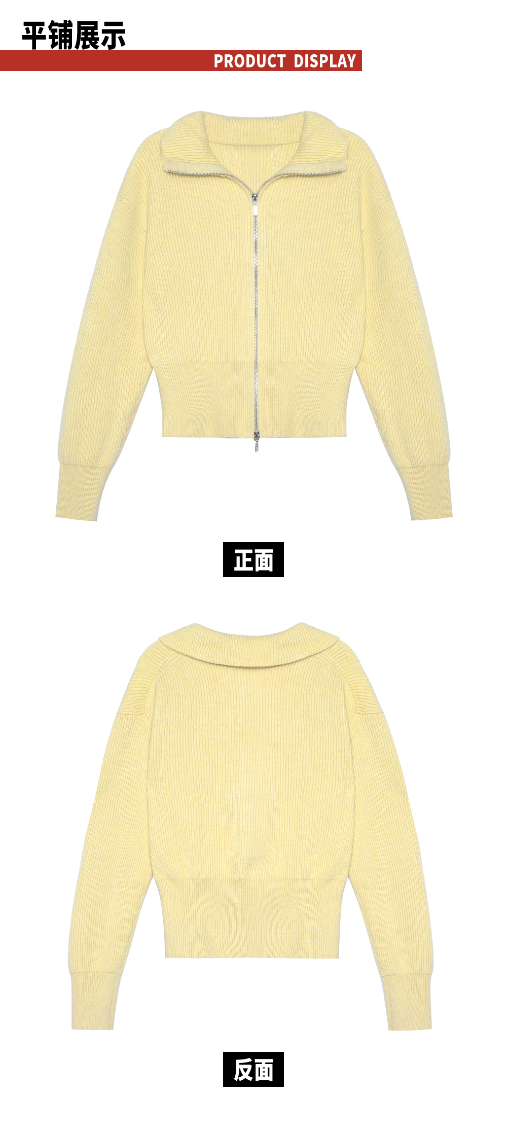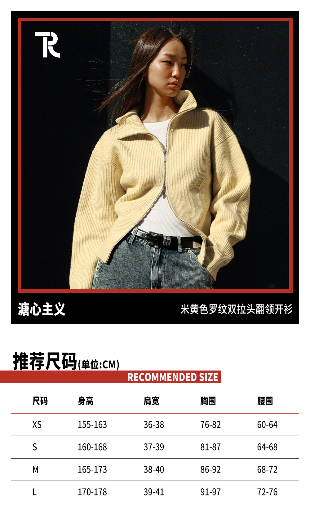 TR她热 溏心主义 鹅黄色针织罗纹双拉链宽松百搭立领开衫外套
