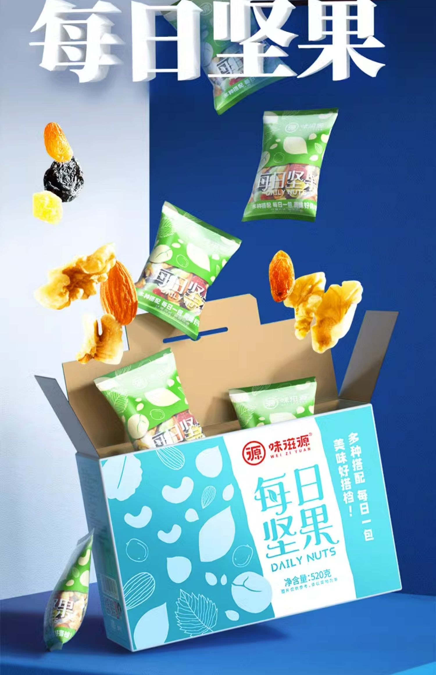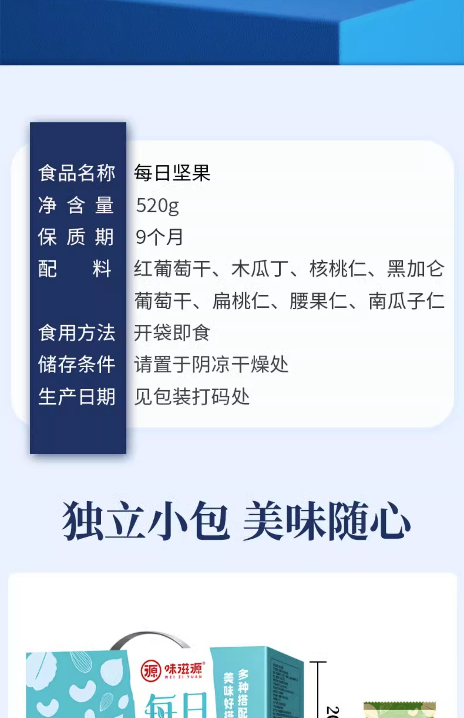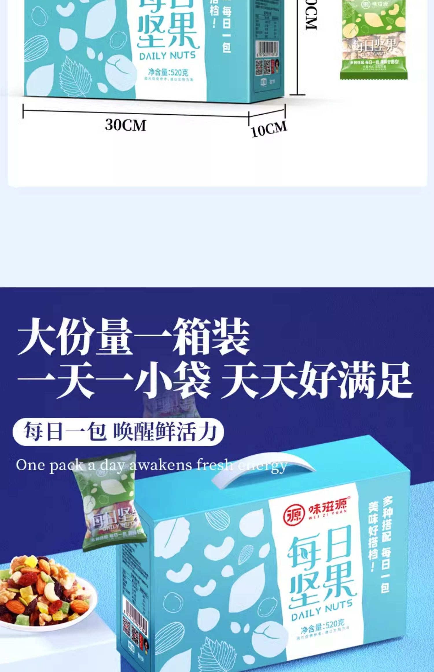 【味滋源】每日坚果520g手提款 混合坚果仁包装 休闲综合零食干果食品果干