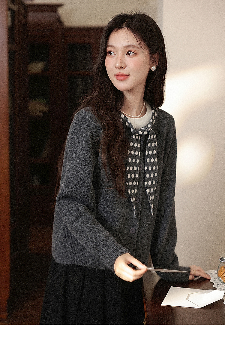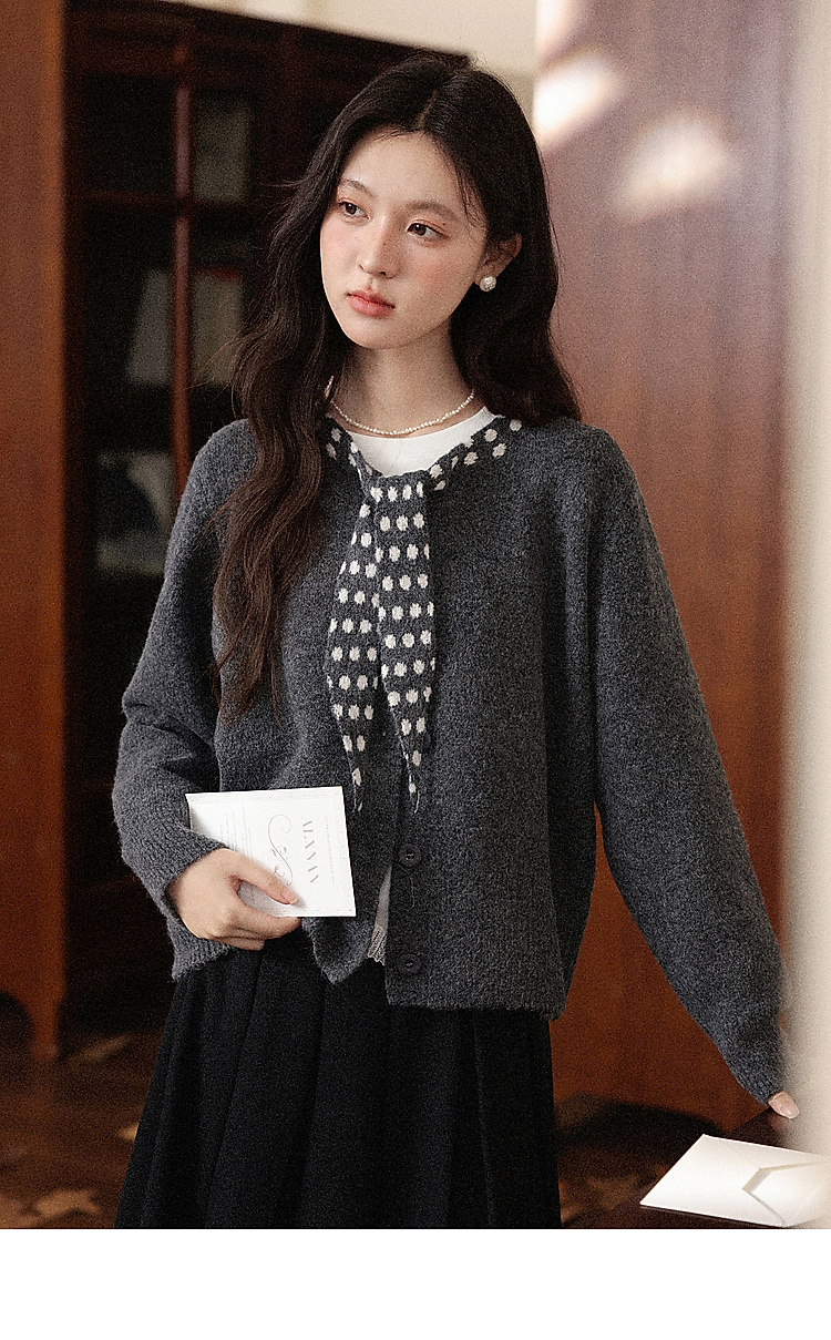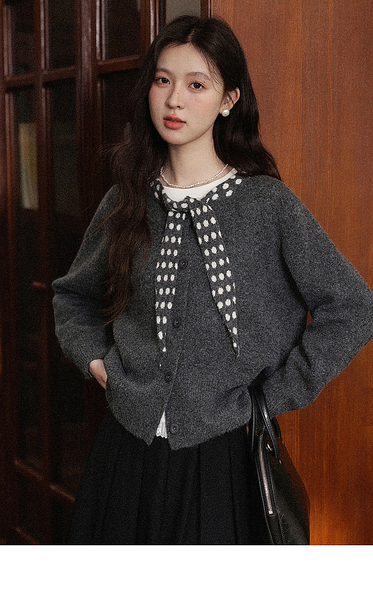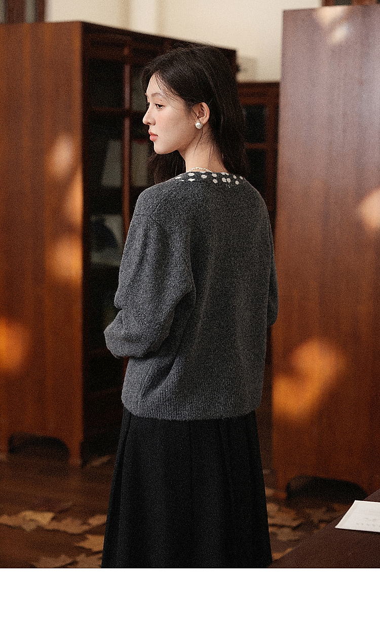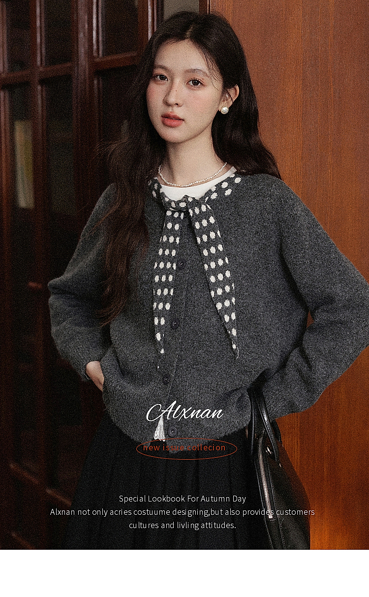 鹿向南「清欢渡月」法式洋气灰色毛衣女秋季时尚长袖开衫短款上衣