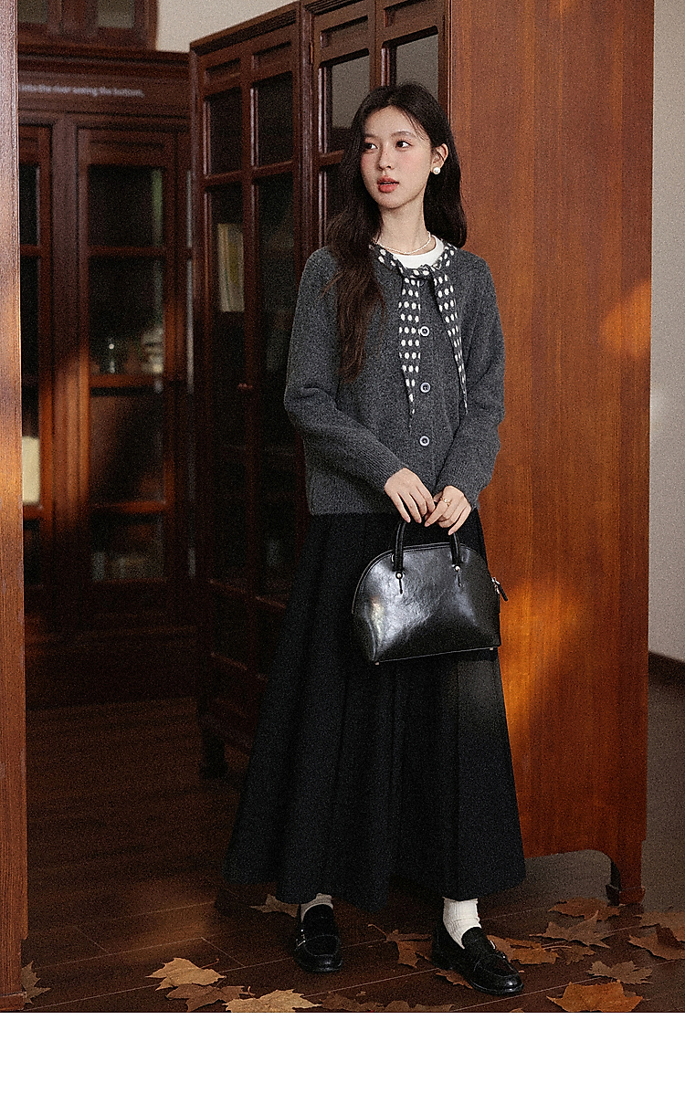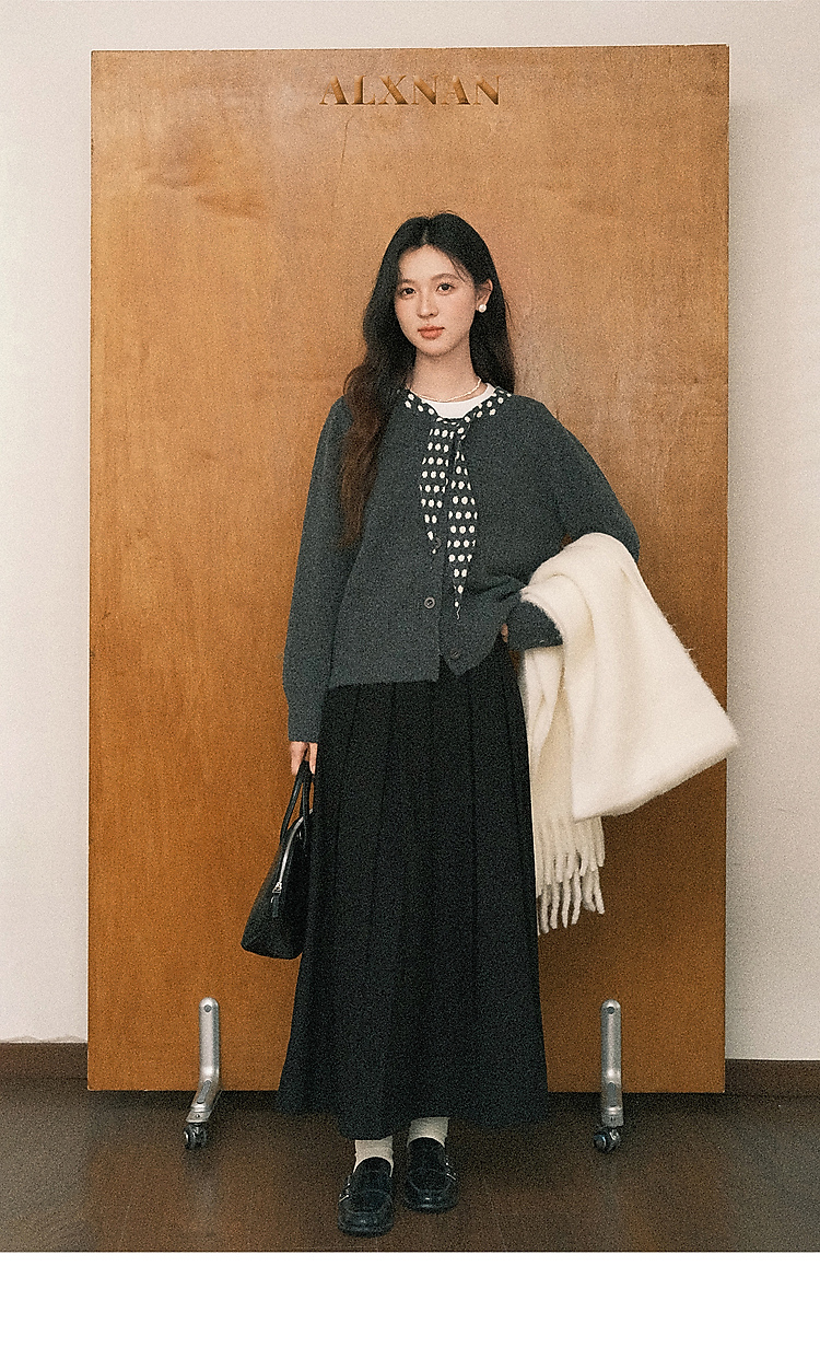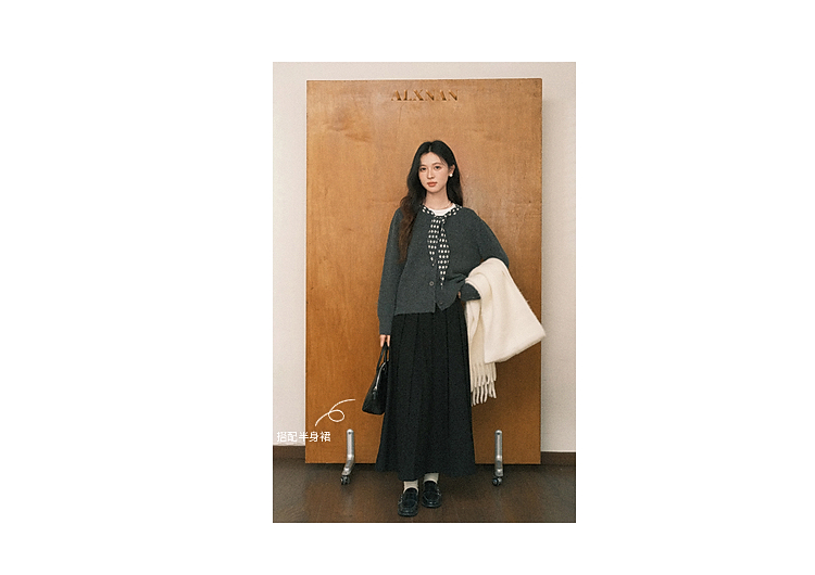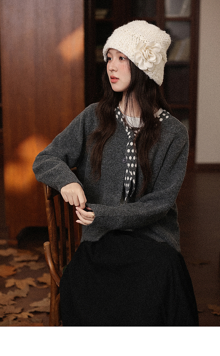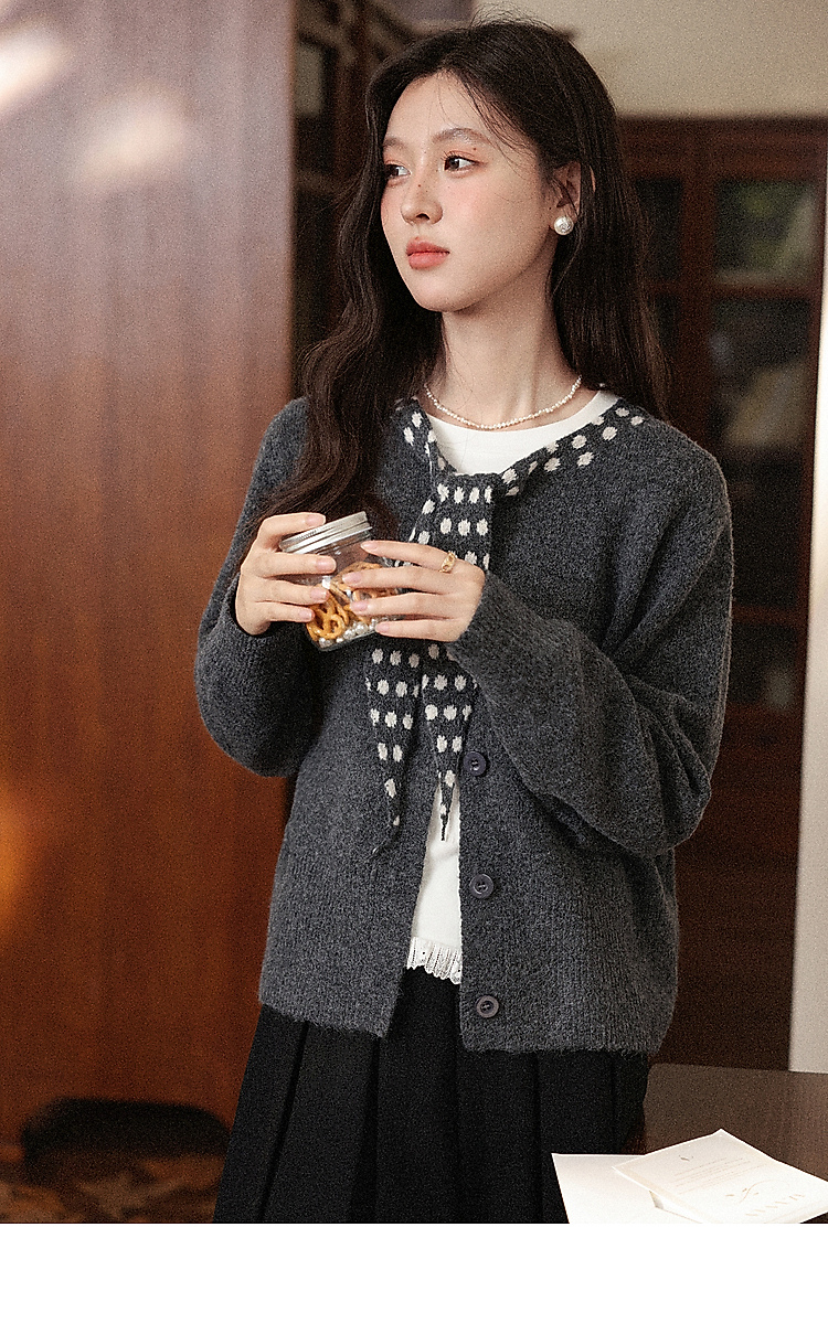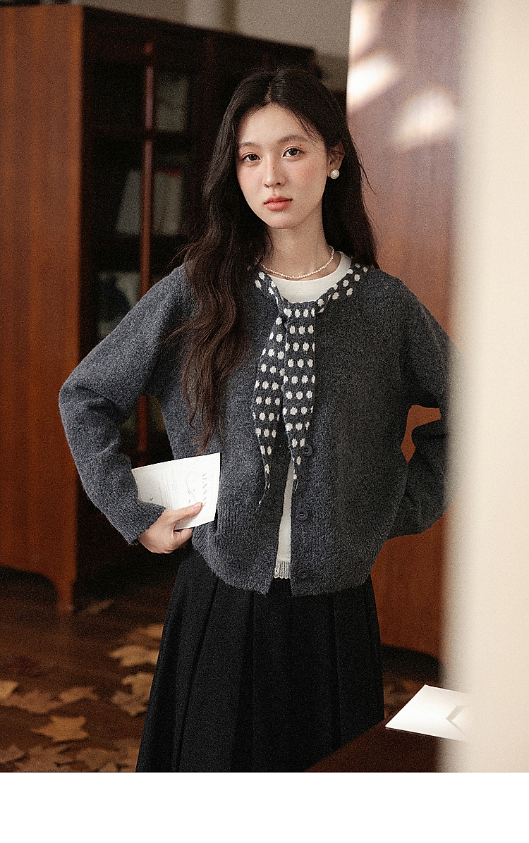 鹿向南「清欢渡月」法式洋气灰色毛衣女秋季时尚长袖开衫短款上衣